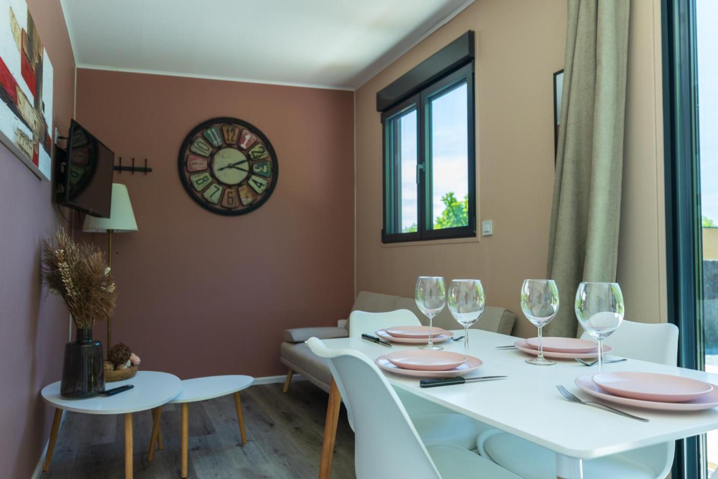 Ce chalet avec climatisation se compose de 2 chambres, dun salon, dune cuisine entièrement équipée avec un réfrigérateur et une machine à café, ainsi que de 1 salle de bains avec une douche et un sèche-cheveux. Une télévision à écran plat est à disposition.