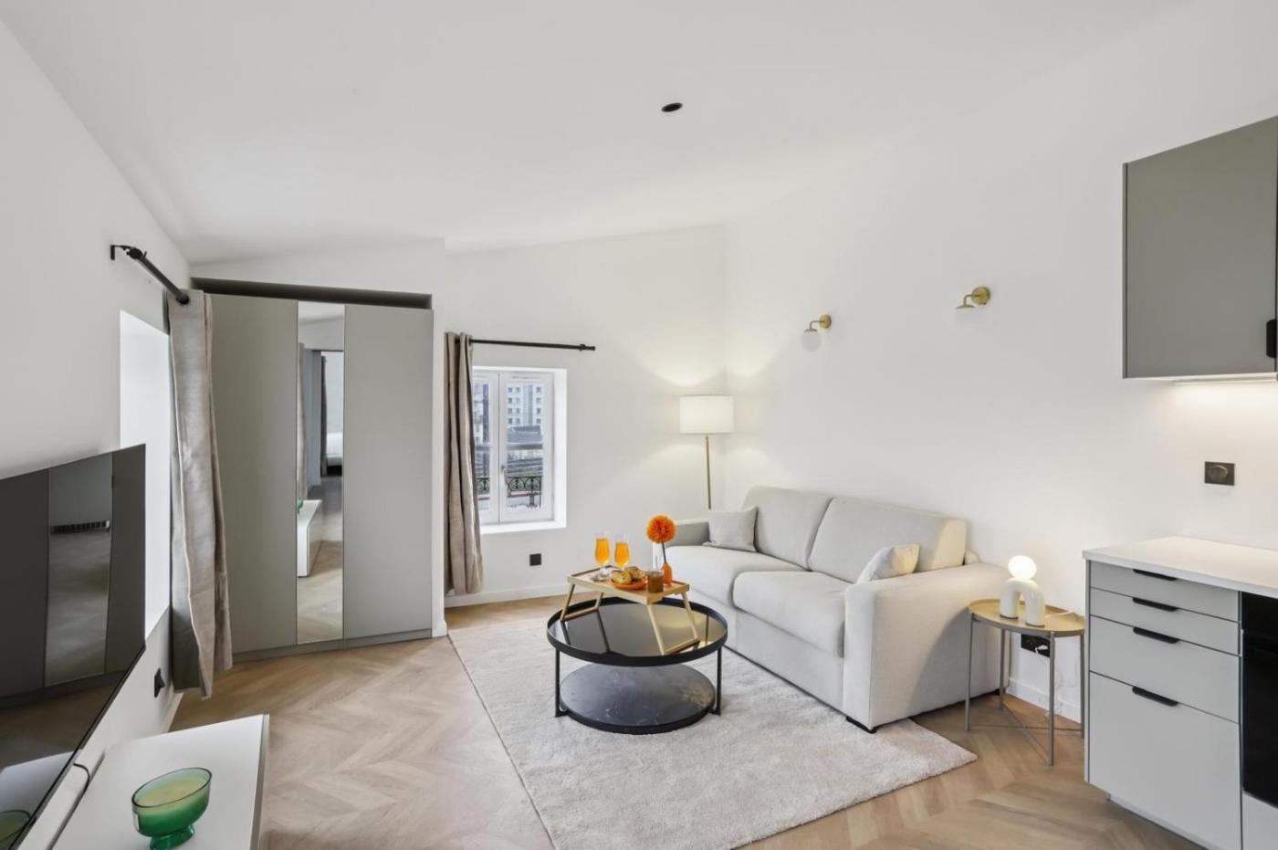 Appartement 1 Chambre Supérieur. Boasting a private entrance, this air-conditioned apartment comes with 1 living room, 1 separate bedroom and 1 bathroom with a walk-in shower and a hairdryer. Guests can make meals in the kitchen that features a refrigerator, a dishwasher, kitchenware and a microwave. The apartment features a tea and coffee maker, a seating area, a dining area, a flat-screen TV with streaming services, as well as a quiet street view. The unit has 2 beds.