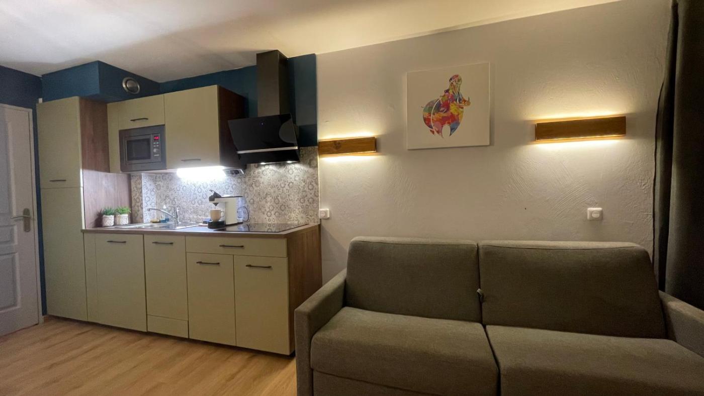 Appartement 1 Chambre. Boasting a private entrance, this apartment comes with 1 living room, 1 separate bedroom and 1 bathroom with a bath and a hairdryer. The fully equipped kitchen has a stovetop, a refrigerator, a dishwasher and kitchenware. Featuring a terrace with garden views, this apartment also features soundproof walls and a flat-screen TV. The unit has 3 beds.