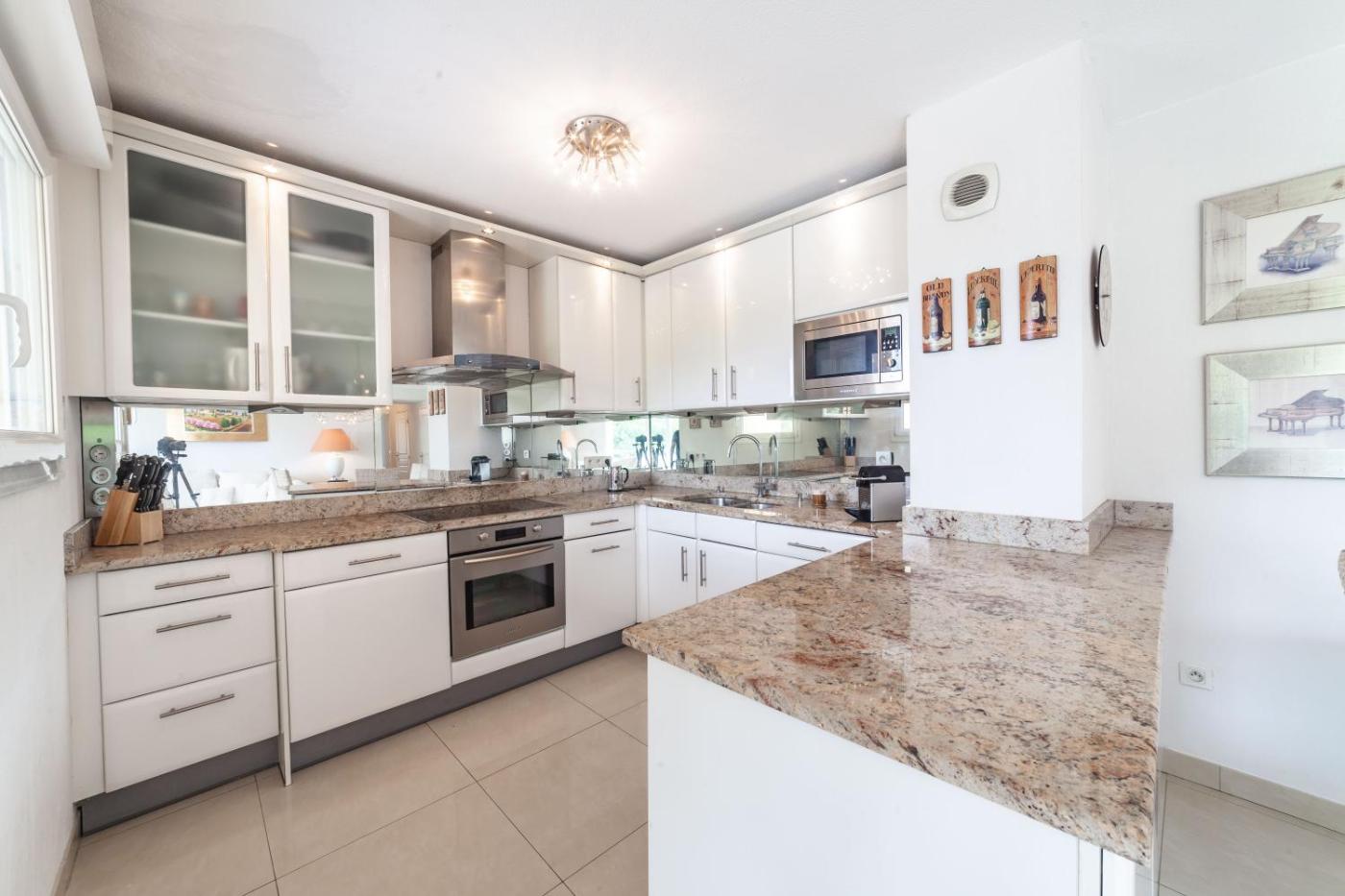 Appartement 3 Chambres. The pool with a view is a top feature of this apartment. Boasting 3 bedrooms, this spacious apartment has 3 bathrooms with a bath, a seating area and terraceyou can relax. Guests will find a stovetop, a refrigerator, a dishwasher and kitchenware in the well-equipped kitchen. The apartment also includes a barbecue. The air-conditioned apartment features a flat-screen TV, a washing machine, a tea and coffee maker, a dining area as well as pool views. The unit offers 6 beds.