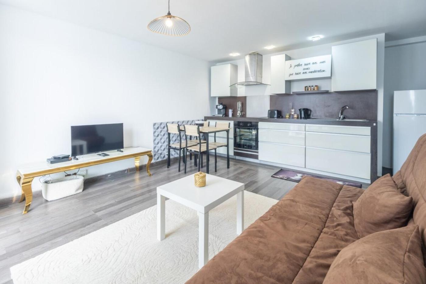 Appartement 1 Chambre. This apartment includes 1 living room, 1 separate bedroom and 1 bathroom with a shower and free toiletries. Guests can make meals in the kitchen that is fitted with kitchenware, a microwave and a toaster. The apartment offers a coffee machine, a seating area, a dining area, a sofa, as well as a TV with cable channels. The unit has 2 beds.
