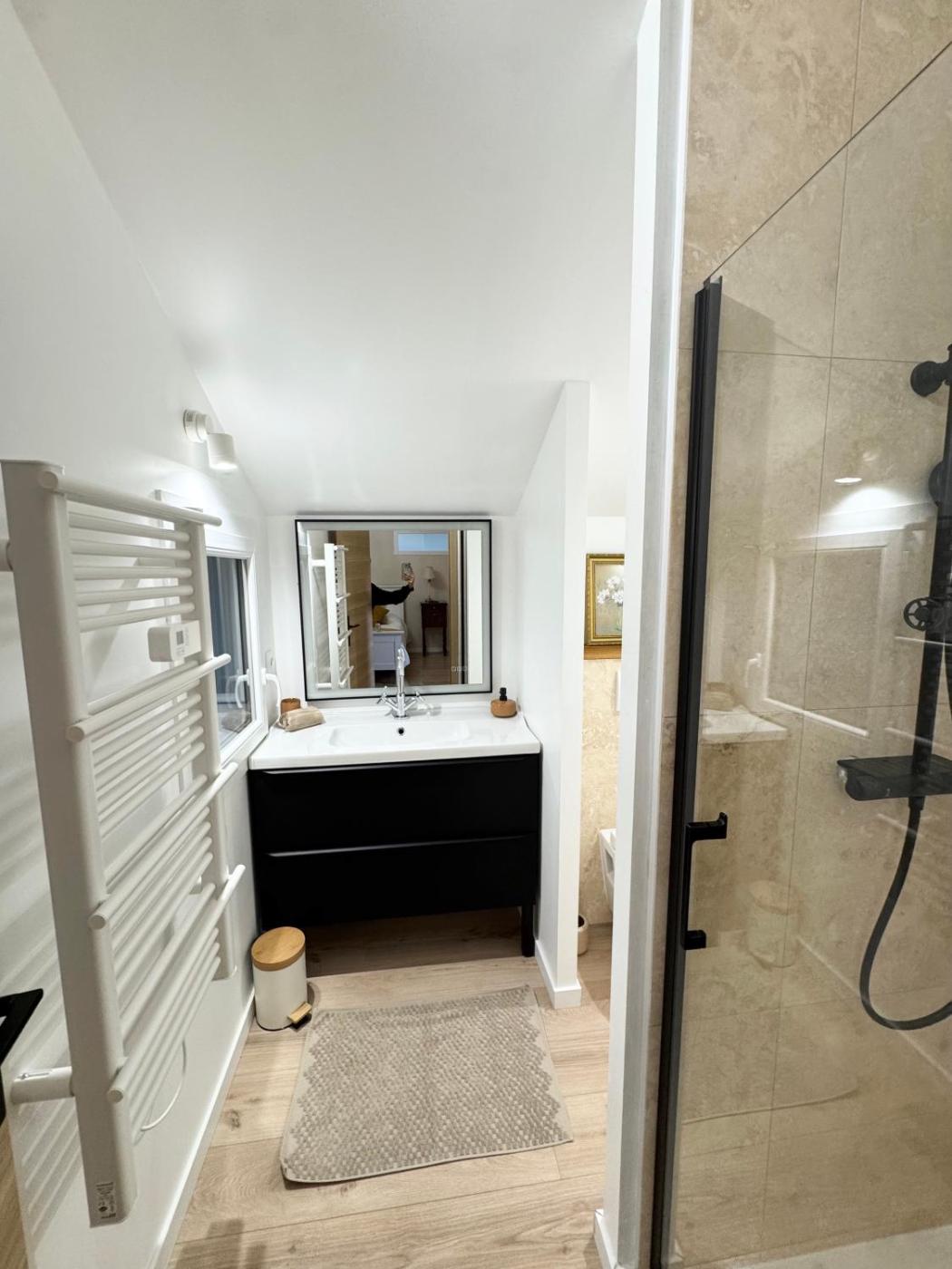 Chambre Familiale Deluxe. Featuring bathrobes, this family room includes a private bathroom with a shower and a hairdryer. The family rooms kitchen, which has a toaster, is available for cooking and storing food. The air-conditioned family room features a flat-screen TV with streaming services, soundproof walls, a tea and coffee maker, a wardrobe as well as garden views. The unit has 2 beds. ;