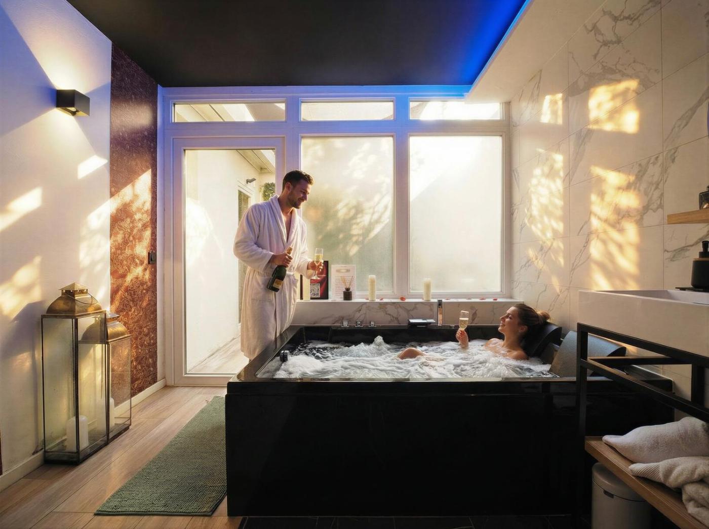 Appartement 1 Chambre. This apartments standout features are the hot tub and fireplace. Boasting a private entrance, this air-conditioned apartment includes a kitchenette, 1 bedroom and 1 bathroom with a walk-in shower and a bath. Meals can be prepared in the kitchenette, which is fitted with a refrigerator, a microwave and a tea and coffee maker. Featuring a terrace with garden views, this apartment also offers soundproof walls and a flat-screen TV with cable channels. The unit has 1 bed.