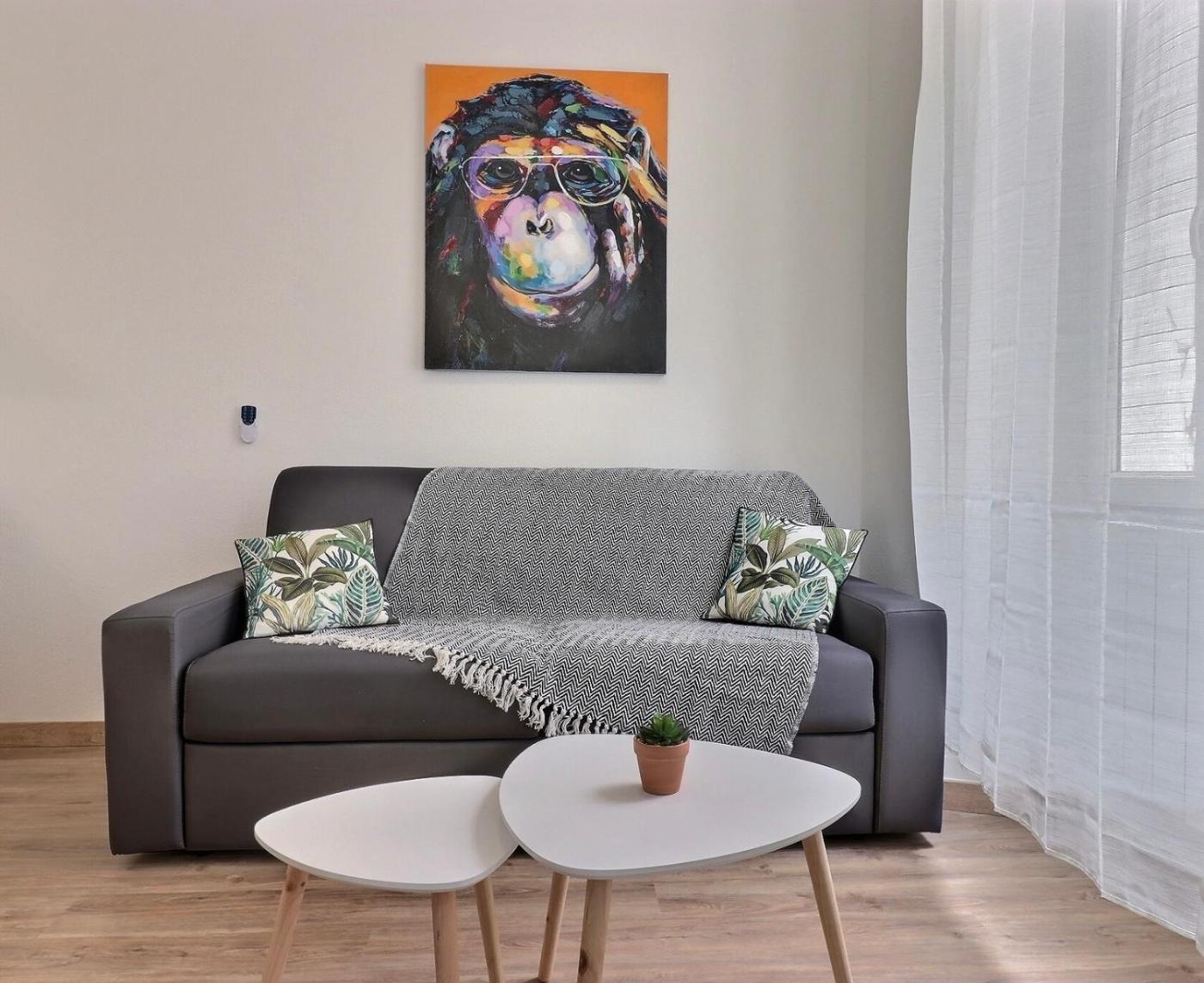 Cet appartement se compose de 1 chambre, dun salon, dune cuisine entièrement équipée avec un réfrigérateur et une machine à café, ainsi que de 1 salle de bains avec une douche. Des serviettes et du linge de lit sont mis à votre disposition.