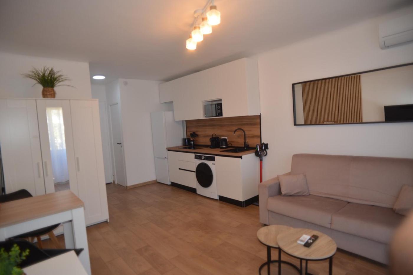 Cet appartement avec climatisation compte un coin repas, une cuisine avec un réfrigérateur et une télévision à écran plat par câble. Des serviettes et du linge de lit sont mis à votre disposition.