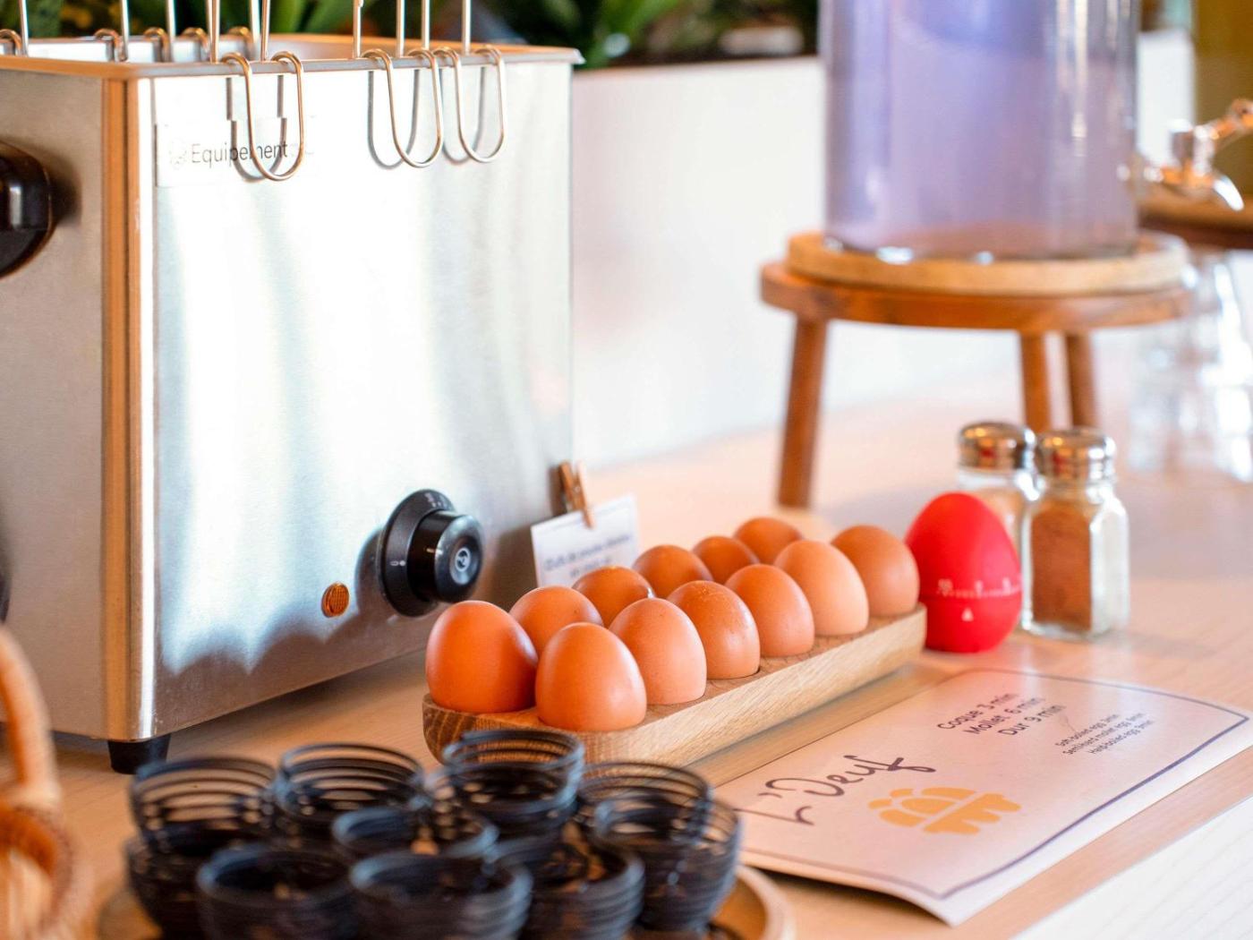 Chaque matin, vous pourrez savourer un petit-déjeuner buffet composé de mets sucrés et salés, tels que des œufs, de la salade de fruits, des yaourts et des jus. Des viennoiseries cuites sur place et des madeleines françaises fraîches sont aussi proposées, ainsi quune boisson chaude et un fruit à emporter. En dehors des horaires habituels, vous pourrez profiter dun petit-déjeuner plus léger à partir de 4h00. Des spécialités françaises sont servies au restaurant, ouvert uniquement pour le dîner.