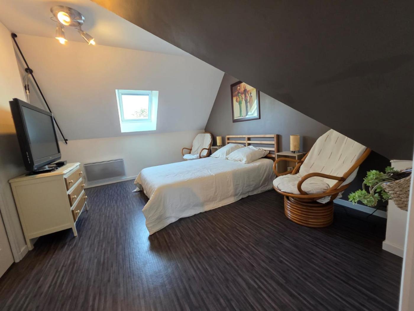 Chambre Double. Providing free toiletries, this double room includes a private bathroom with a shower and a hairdryer. The spacious air-conditioned double room provides a flat-screen TV, a private entrance, a tea and coffee maker, a seating area as well as garden views. The unit offers 2 beds.