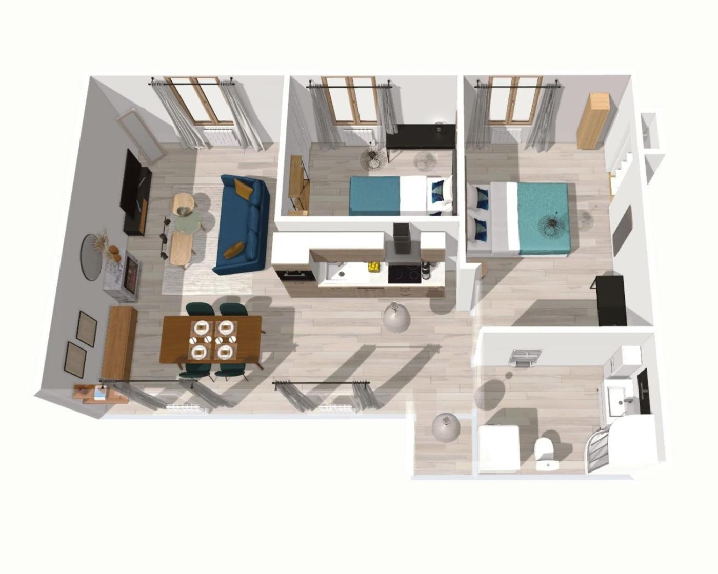 Appartement 2 Chambres. This spacious apartment is comprised of 1 living room, 2 separate bedrooms and 1 bathroom with a shower and a hairdryer. Guests can make meals in the kitchen that comes with a stovetop, a refrigerator, kitchenware and an oven. Featuring a patio, this apartment also offers a washing machine, a coffee machine and a flat-screen TV with streaming services. The unit offers 3 beds.