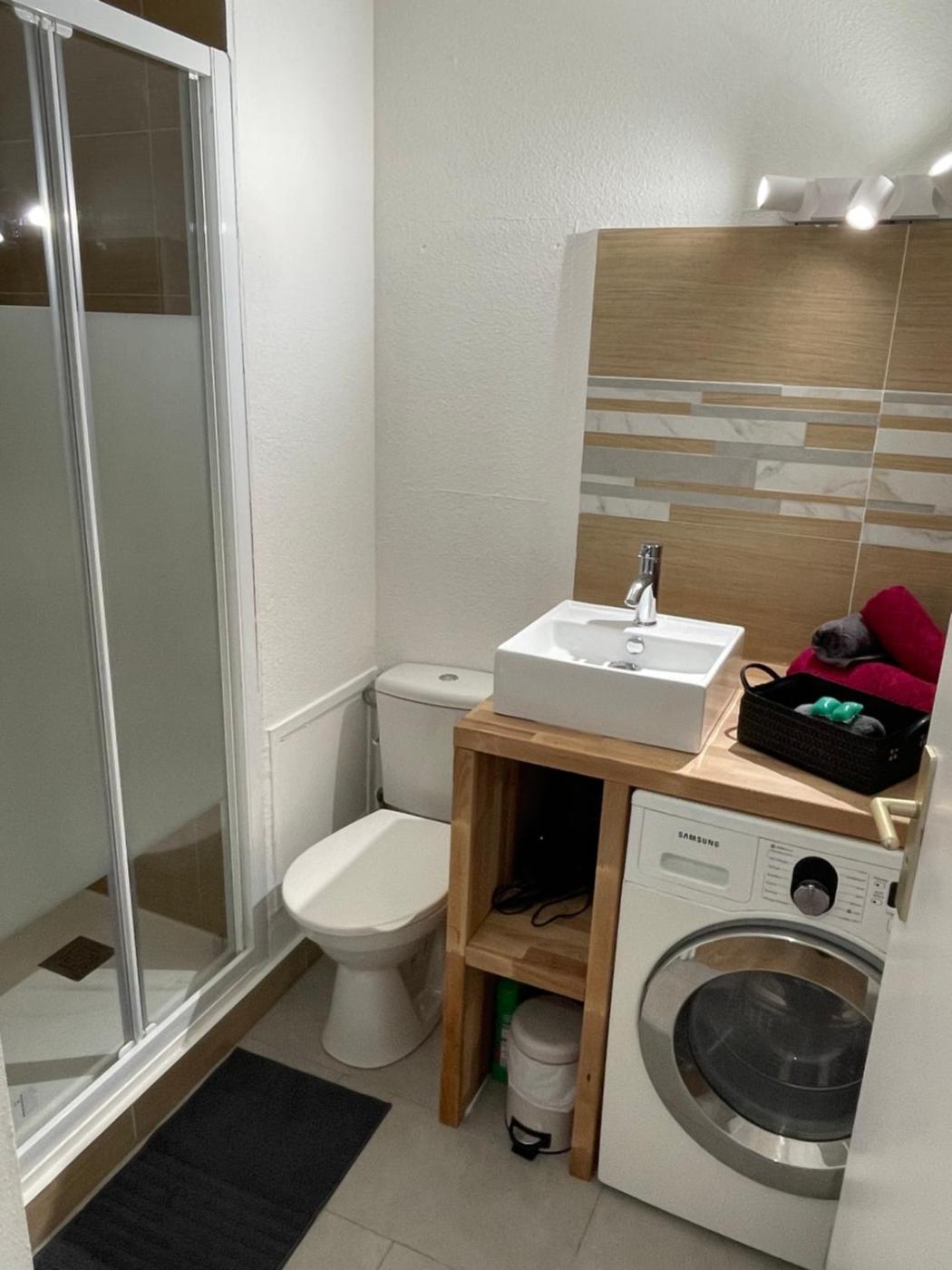 Appartement 1 Chambre. This air-conditioned apartment comes with 1 living room, 1 separate bedroom and 1 bathroom with a shower. Guests can make meals in the kitchen that features a stovetop, a refrigerator, kitchenware and a microwave. The apartment features a washing machine, a coffee machine, a dining area, a flat-screen TV with cable channels, as well as garden views. The unit has 1 bed.