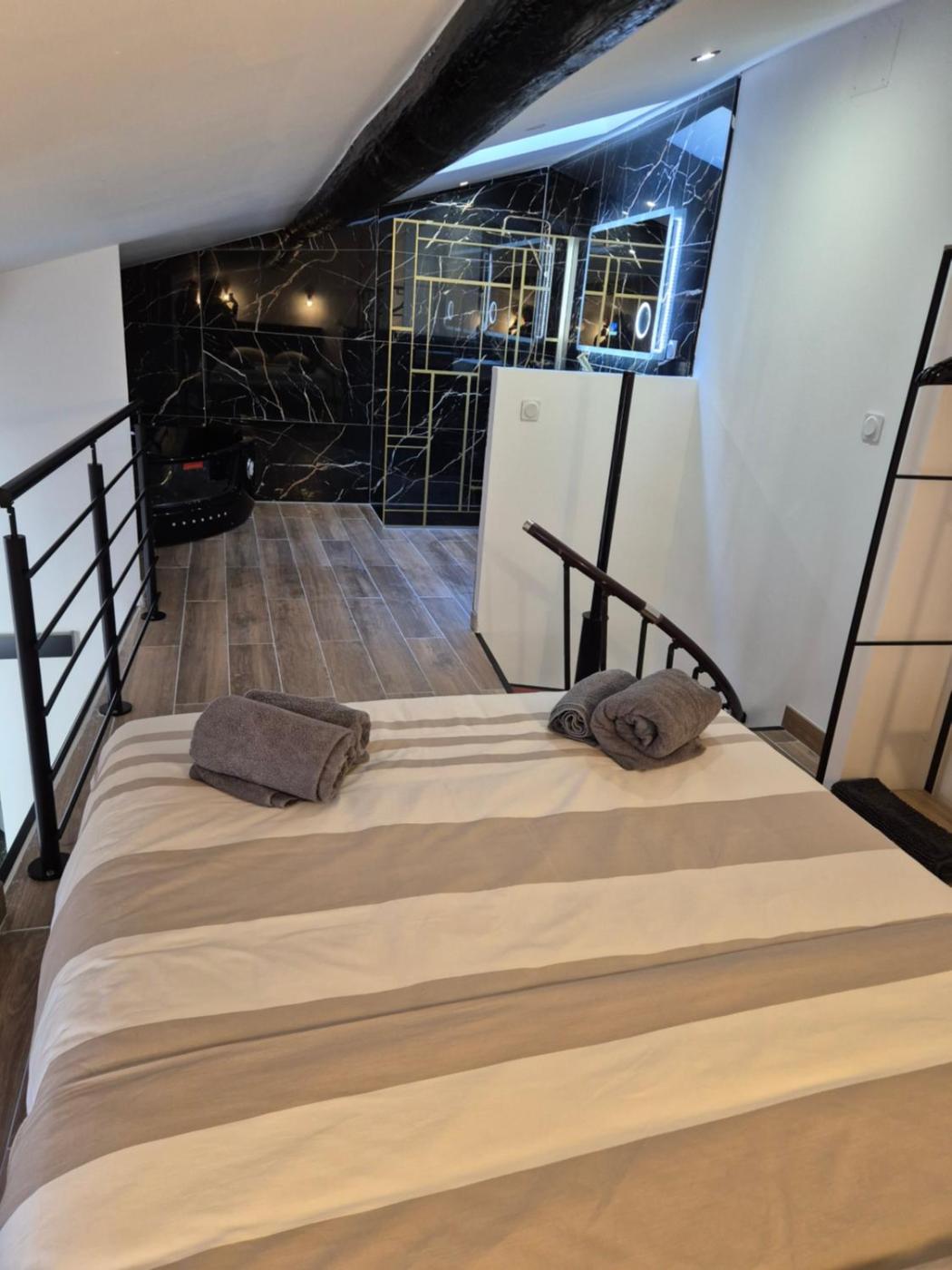 Appartement 1 Chambre. This apartment features a hot tub and a spa bath. The well-equipped kitchen features a stovetop, a refrigerator, kitchenware and an oven. This apartment is air-conditioned and has a seating area with a flat-screen TV, a washing machine, a private entrance, soundproof walls, as well as a coffee machine. The unit has 1 bed.