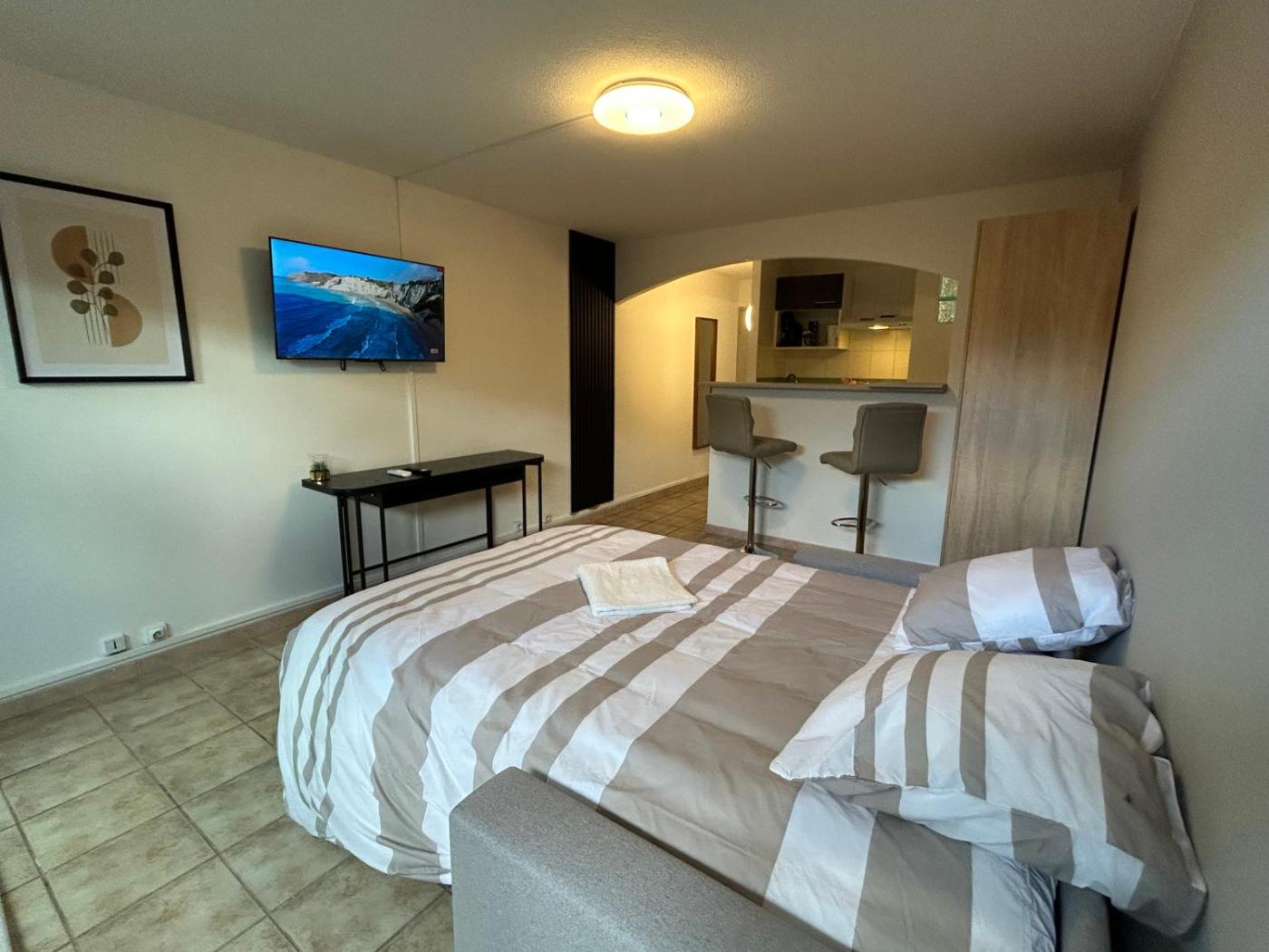 Appartement 1 Chambre. The apartments kitchen is available for cooking and storing food. Featuring a terrace with garden views, this apartment also provides air conditioning and a flat-screen TV. The unit offers 1 bed.