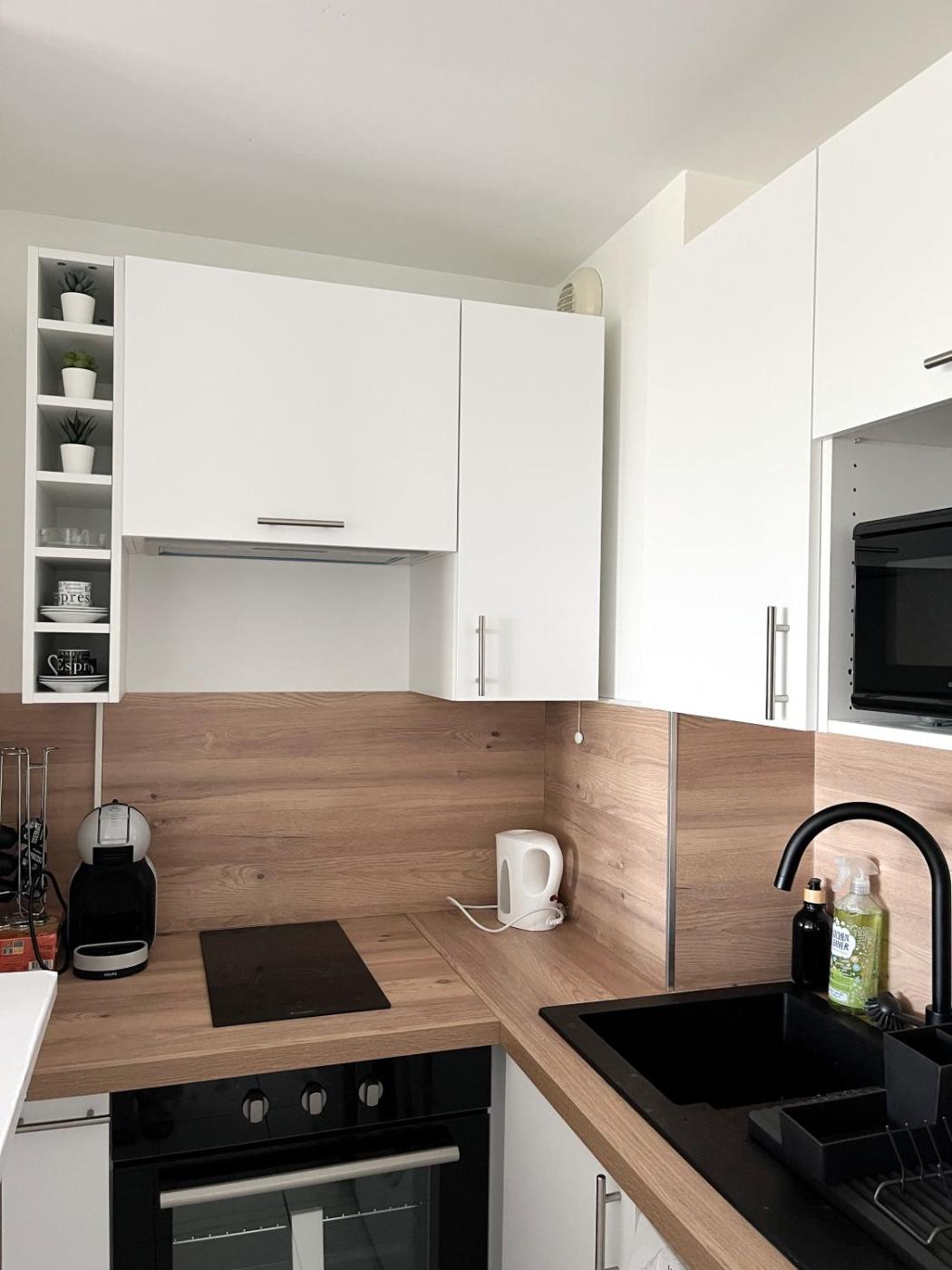Appartement 1 Chambre. Guests can make meals in the kitchen that is fitted with a stovetop, a refrigerator, an oven and a microwave. The apartment offers a washing machine, a private entrance, a tea and coffee maker, a flat-screen TV with cable channels, as well as a quiet street view. The unit offers 2 beds.