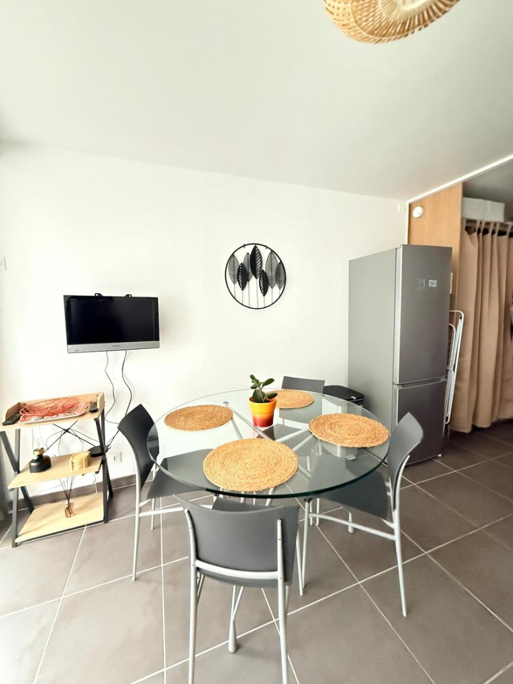 Appartement 1 Chambre. Featuring a private entrance, this air-conditioned apartment comprises 1 living room, 1 separate bedroom and 1 bathroom with a shower and a hairdryer. In the fully equipped kitchen, guests will find a refrigerator, a dishwasher, kitchenware and a microwave. The apartment features tiled floors, a seating area with a flat-screen TV, a washing machine, a coffee machine as well as garden views. The unit offers 2 beds.