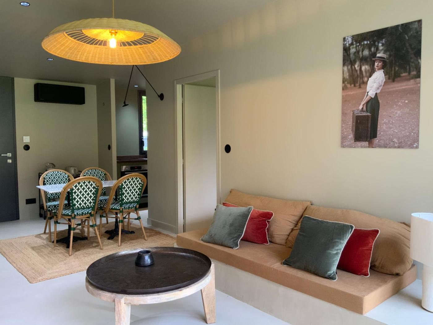 Appartement 2 Chambres - Vue sur Jardin. Boasting a private entrance, this air-conditioned apartment includes 1 living room, 2 separate bedrooms and 1 bathroom with a walk-in shower and a hairdryer. In the fully equipped kitchenette, guests will find a stovetop, a refrigerator, a dishwasher and kitchenware. Featuring a terrace with garden views, this apartment also offers a washing machine and a flat-screen TV. The unit has 3 beds. ;