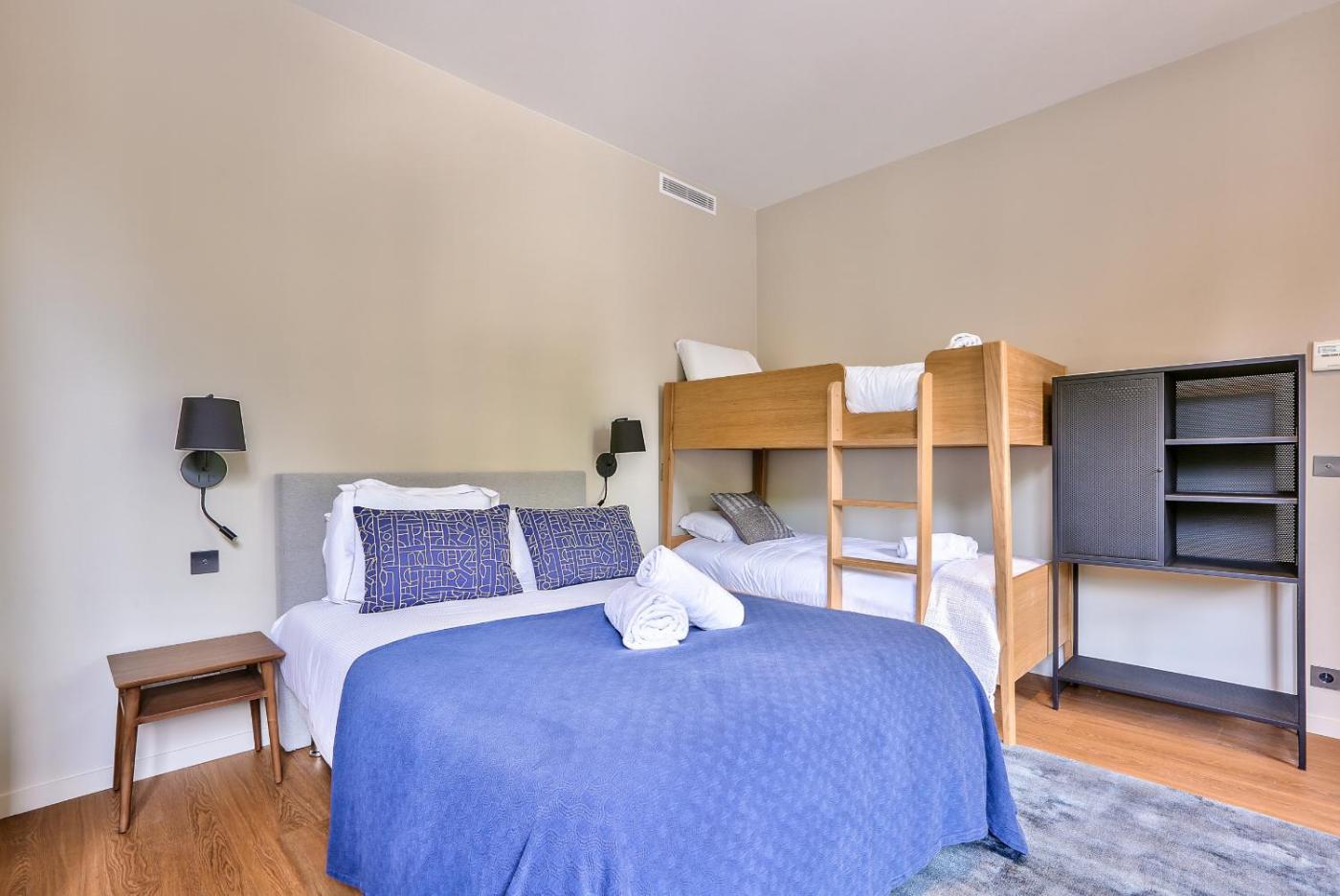 Cet appartement avec climatisation se compose de 5 chambres, dun salon, dune cuisine entièrement équipée avec un réfrigérateur et une machine à café, ainsi que de 3 salles de bains avec une douche et un sèche-cheveux. Des serviettes et du linge de lit sont mis à votre disposition.