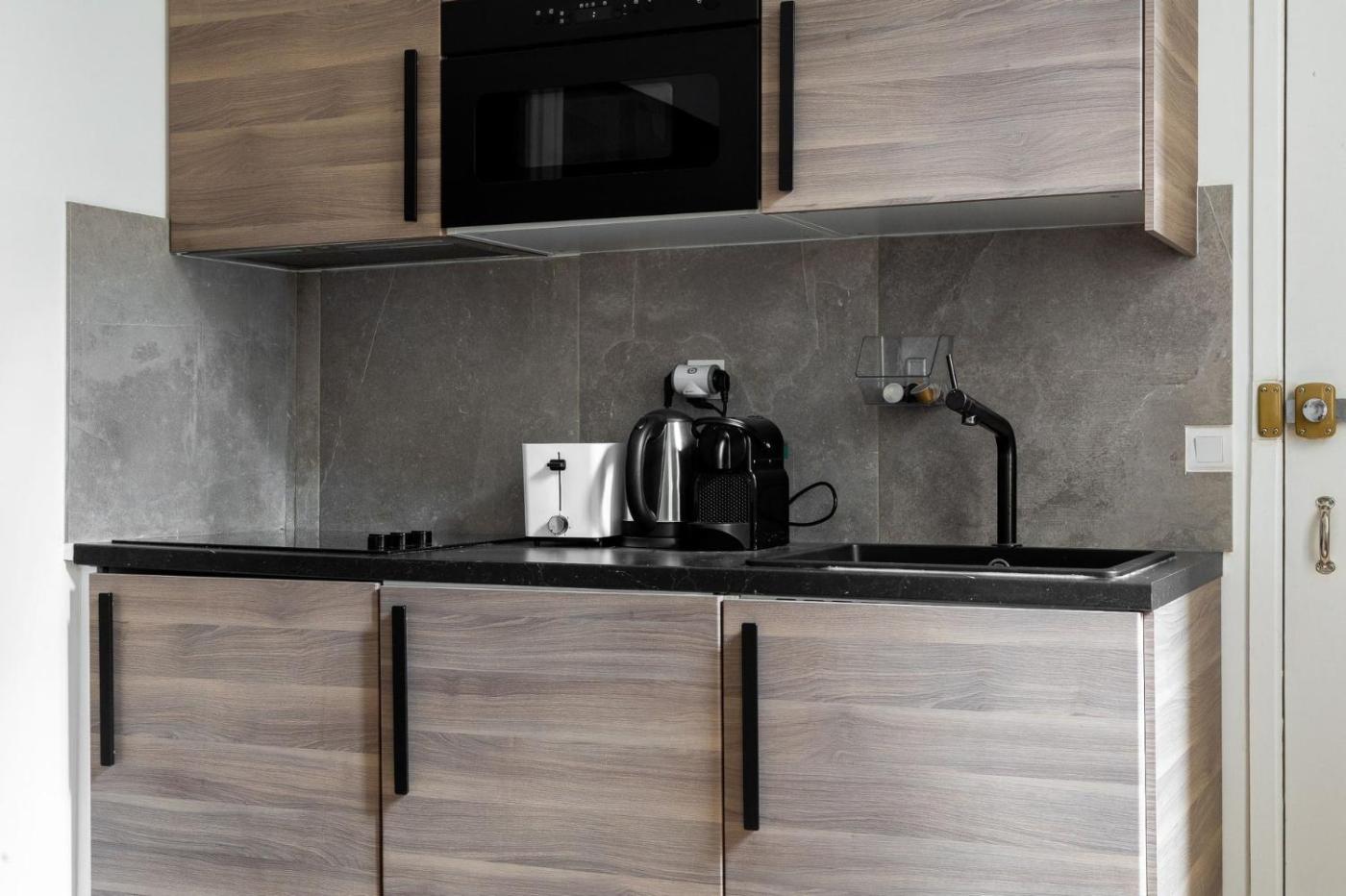 Cet appartement se compose de 1 chambre, dun salon, dune cuisine entièrement équipée avec un réfrigérateur et une machine à café, ainsi que de 1 salle de bains avec une douche et des articles de toilette gratuits.