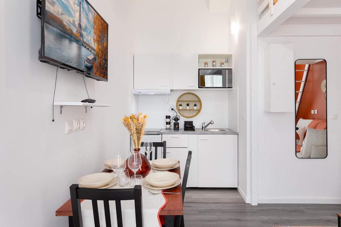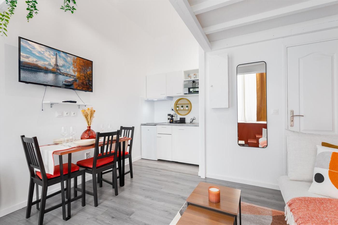 Appartement 1 Chambre. The apartments kitchen, which features a refrigerator and a microwave, is available for cooking and storing food. The apartment provides a coffee machine, a seating area, a sofa, a TV with streaming services, as well as city views. The unit offers 2 beds.