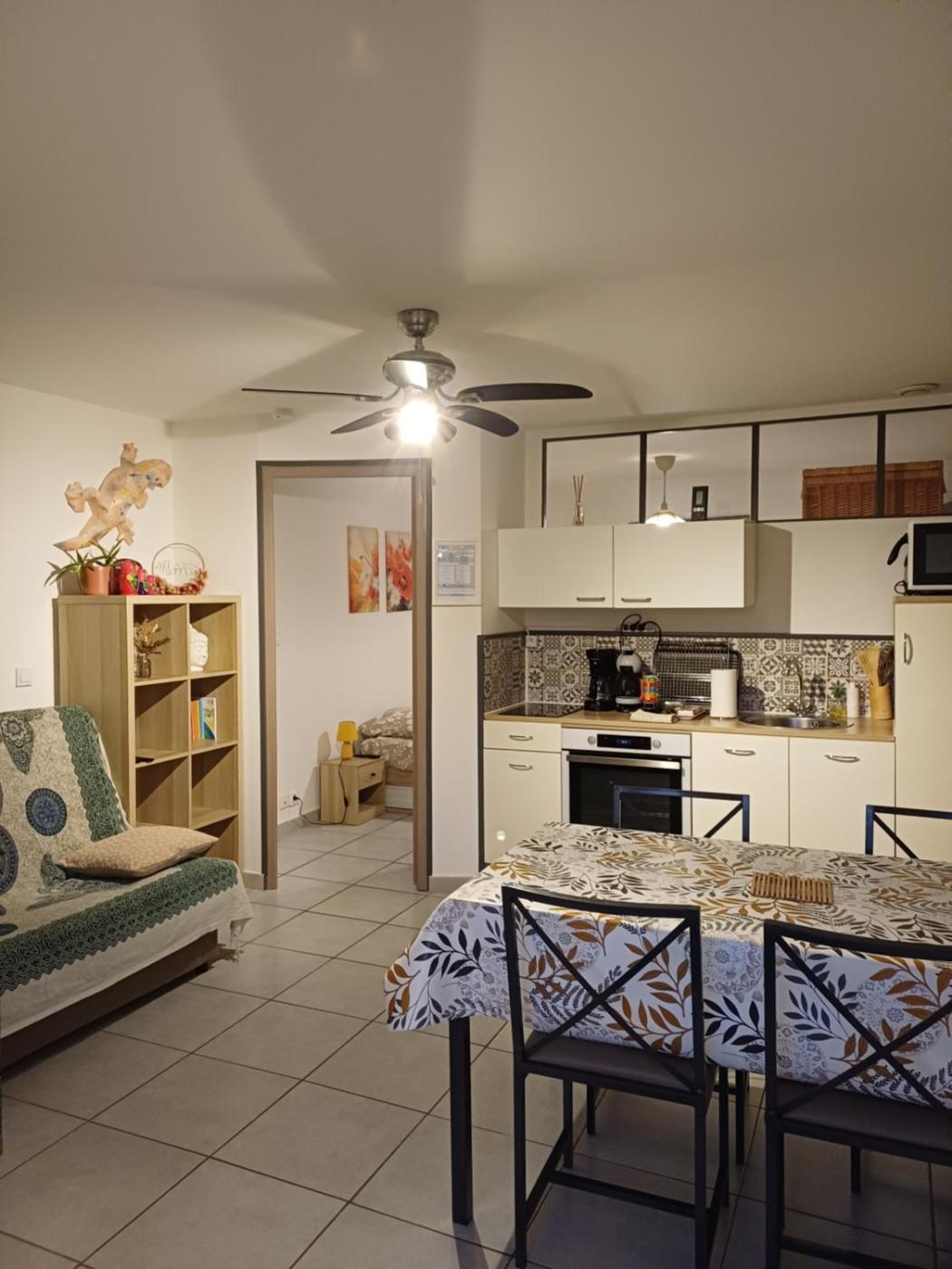 Appartement 1 Chambre. This apartment includes 1 living room, 1 separate bedroom and 1 bathroom with a bath and a hairdryer. In the well-equipped kitchenette, guests will find a stovetop, a refrigerator, kitchenware and an oven. Boasting a terrace with garden views, this apartment also offers a washing machine and a flat-screen TV with streaming services. The unit has 2 beds.