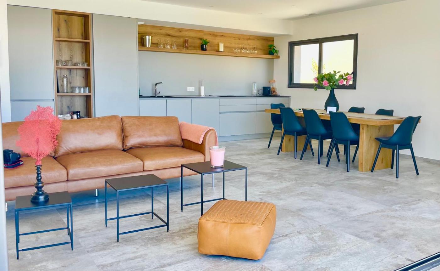 Villa 3 Chambres. Vous vivrez une expérience unique dans cette villa dotée d’une piscine avec vue. Cette villa climatisée comprend une entrée privée, une cuisine, 3 chambres ainsi que 3 salles de bains avec une douche à litalienne et un sèche-cheveux. La cuisine entièrement équipée est munie de plaques de cuisson, d’un réfrigérateur, d’un lave-vaisselle et d’ustensiles. La villa est également pourvue d’un barbecue. Cette villa dispose en outre d’une terrasse avec vue sur la mer, dun lave-linge et dune télévision à écran plat avec des services de streaming. Ce logement comporte 3 lits.