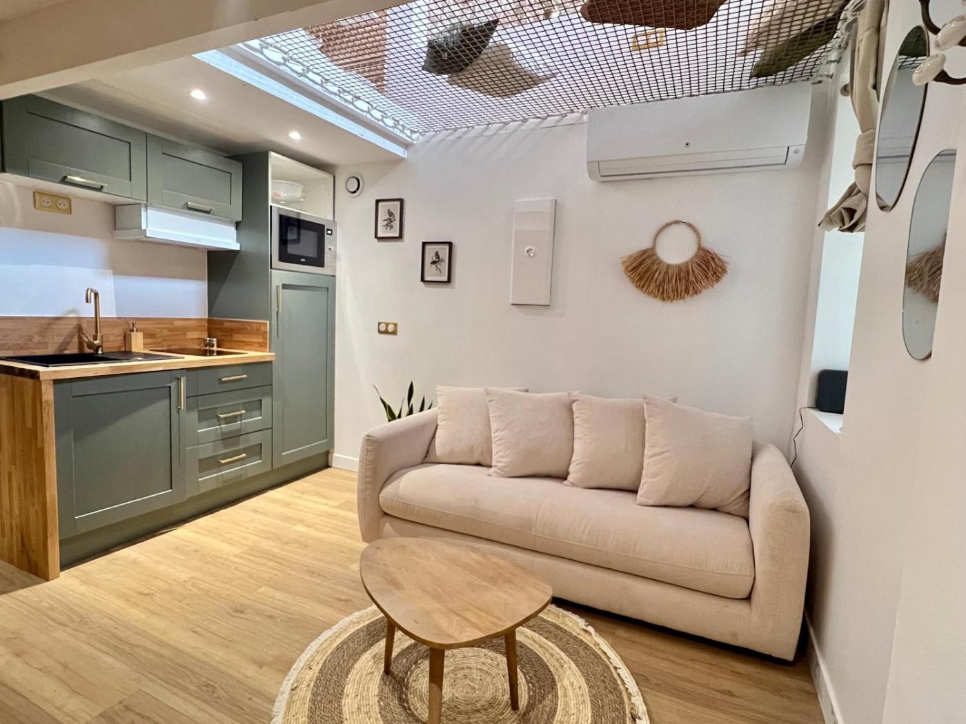 Appartement 1 Chambre. Featuring a private entrance, this apartment comprises 1 living room, 1 separate bedroom and 1 bathroom with a shower and a hairdryer. Meals can be prepared in the well-fitted kitchen, which comes with a stovetop, a refrigerator, kitchenware and a microwave. This apartment features soundproof walls, flat-screen TV, garden views, as well as chocolate for guests. The unit offers 2 beds.