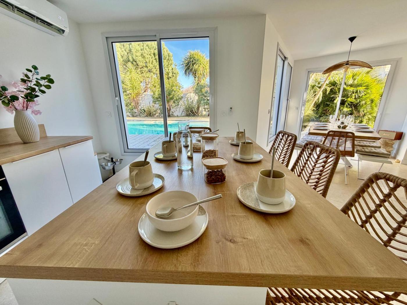 Villa 1 Chambre. Guests will have a special experience as the villa provides a pool with a view. Featuring a private entrance, this air-conditioned villa consists of a kitchen, 1 bedroom and 3 bathrooms with a walk-in shower and a bath. Guests can make meals in the kitchen that is equipped with a stovetop, a refrigerator, a dishwasher and a microwave. This wheelchair accessible villa features a washing machine, a seating area with a flat-screen TV and a roll-in shower. The unit offers 5 beds.