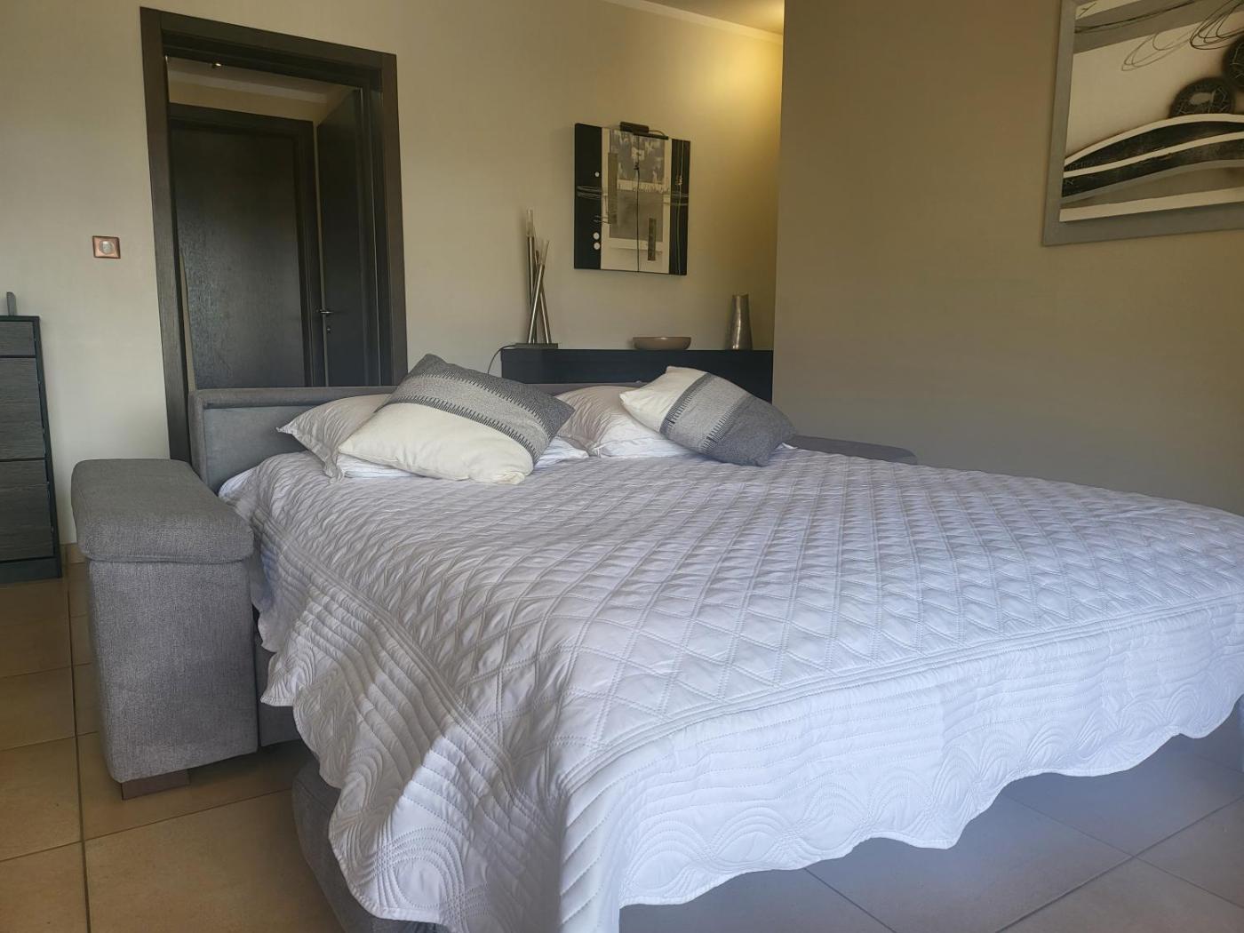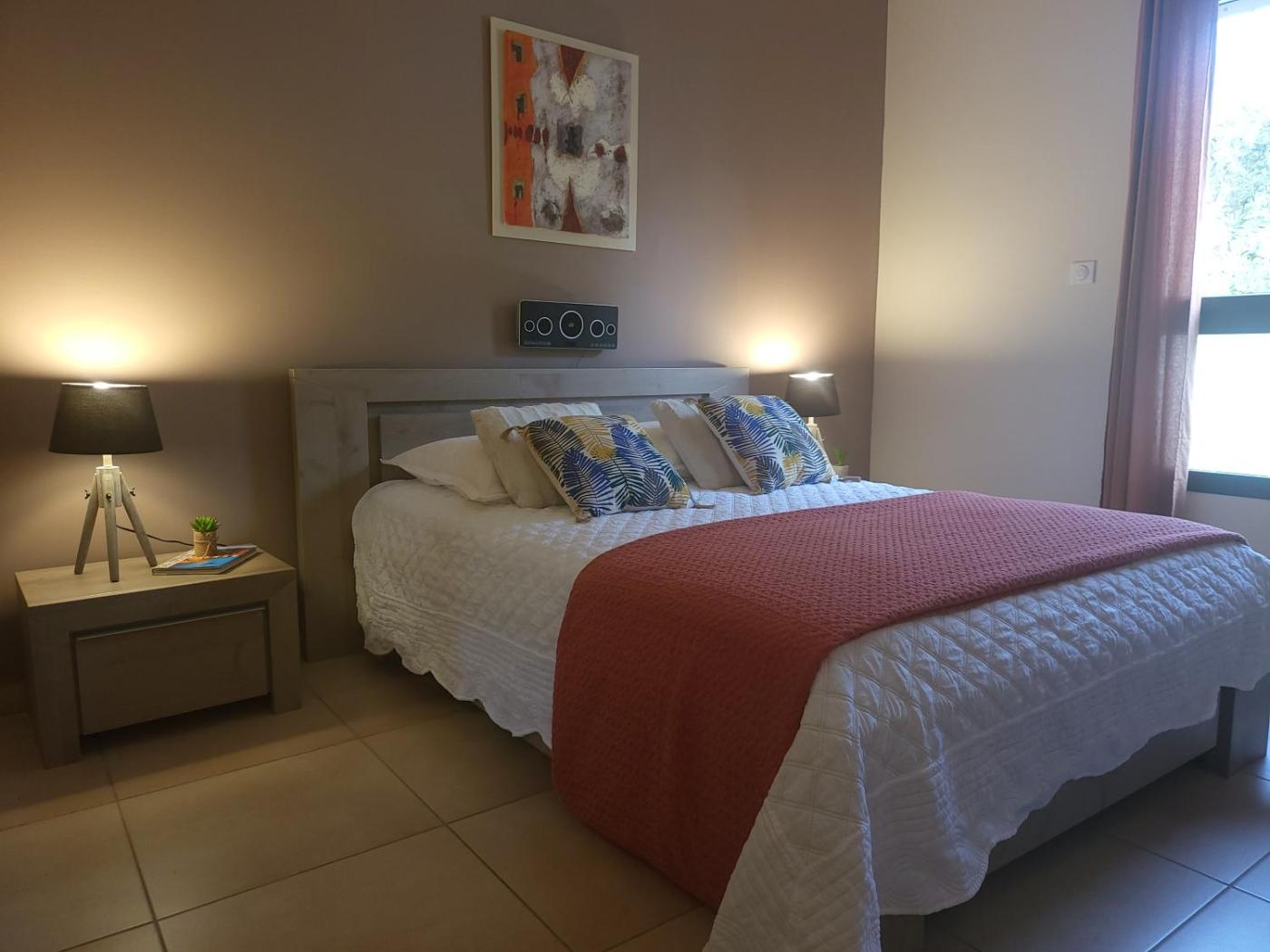 Appartement 1 Chambre. La cuisine bien équipée est munie de plaques de cuisson, d’un réfrigérateur, d’un lave-vaisselle et d’ustensiles. Un barbecue est également à votre disposition. Doté d’une entrée privée et offrant une vue sur le jardin, cet appartement spacieux et climatisé dispose dune télévision à écran plat, dun lave-linge et dune machine à café. Ce logement comprend 2 lits.