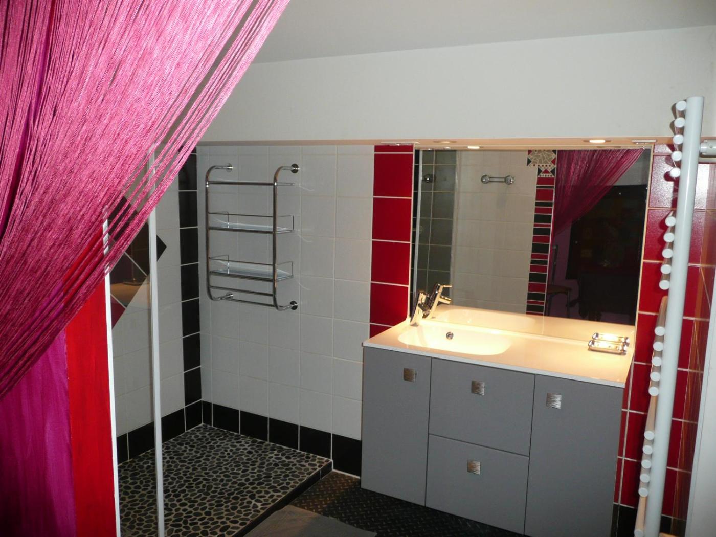Chambre Double - Vue sur Jardin. The spacious double room provides a seating area, a wardrobe, as well as a private bathroom featuring a shower and a hairdryer. This double room offers heating, a flat-screen TV and garden views. The unit offers 2 beds.