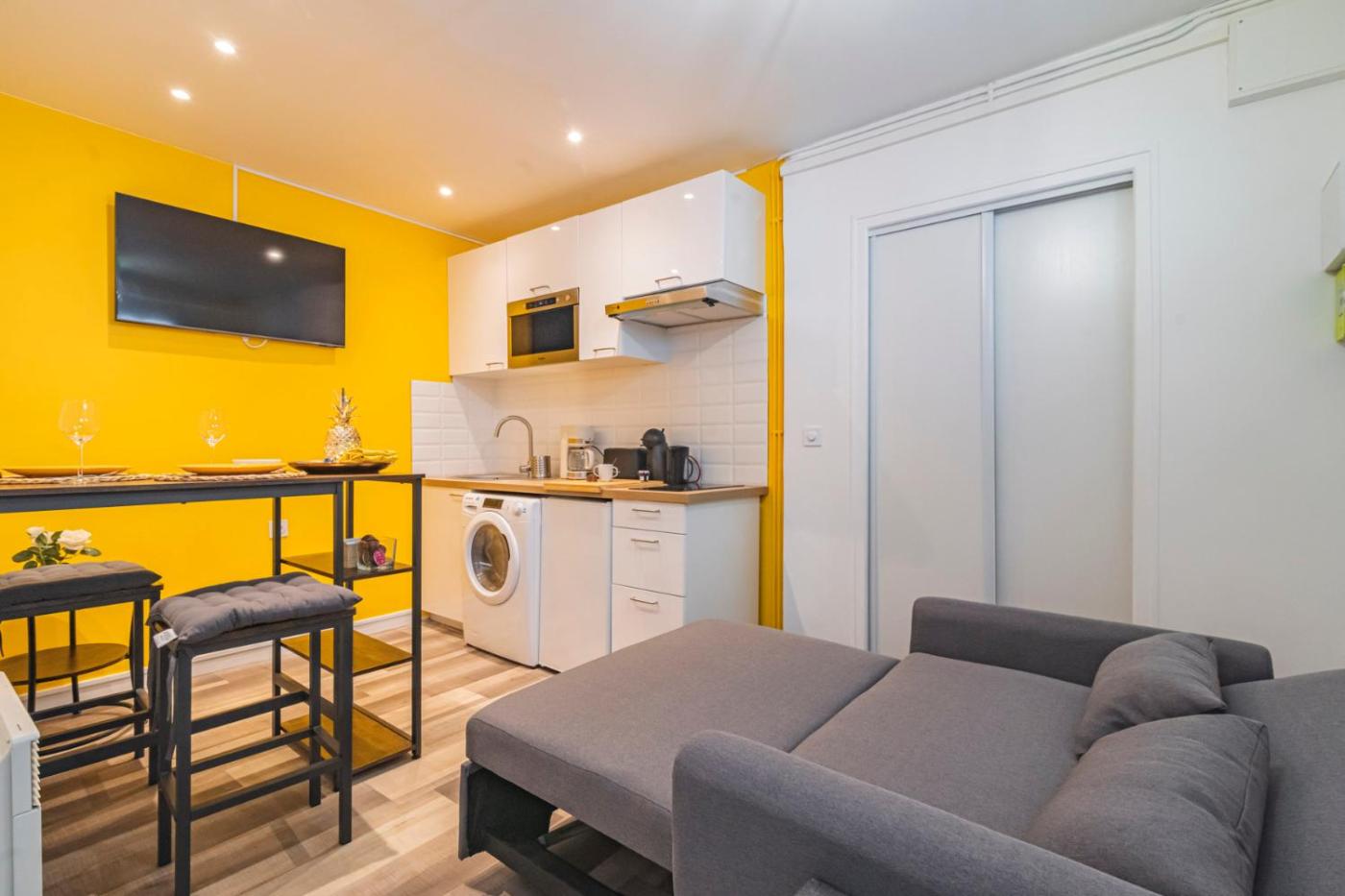 Appartement 1 Chambre. This apartment is comprised of 1 living room, 1 separate bedroom and 1 bathroom with a shower and free toiletries. The well-equipped kitchenette has a stovetop, a refrigerator, kitchenware and a microwave. This apartment features a washing machine, a tea and coffee maker, flat-screen TV with streaming services, as well as chocolate for guests. The unit offers 2 beds.
