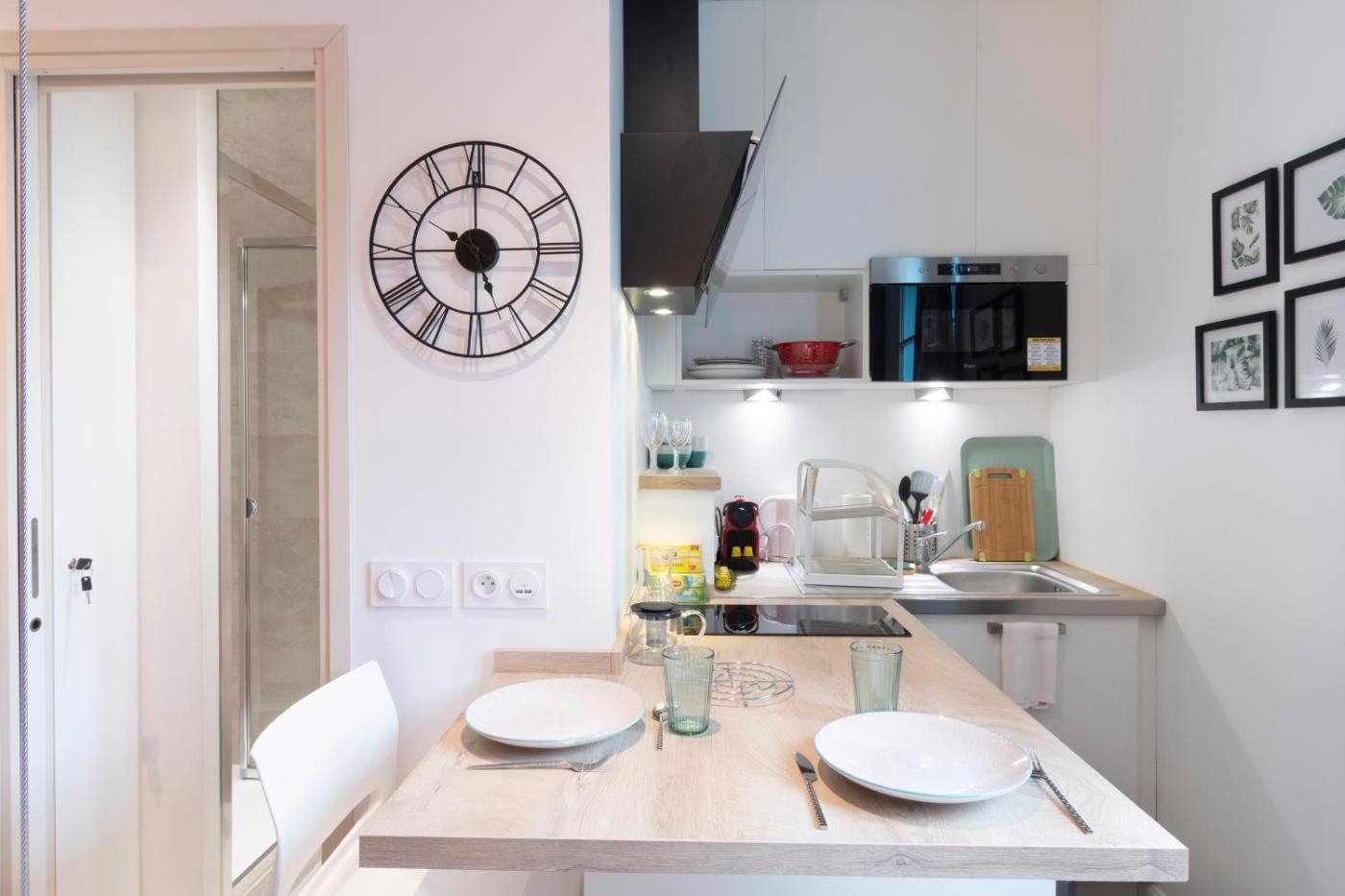 Studio. The apartment has 1 bedroom and 1 bathroom with a shower and free toiletries. Meals can be prepared in the well-fitted kitchenette, which has a stovetop, a refrigerator, kitchenware and a toaster. The apartment features parquet floors, a seating area with a flat-screen TV, a coffee machine, a dining area, as well as a wardrobe. The unit has 1 bed.