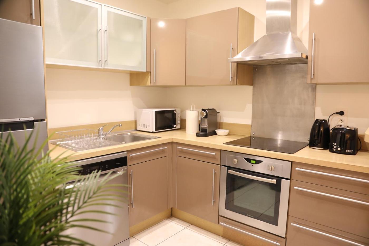 Appartement 1 Chambre. This apartment includes 1 living room, 1 separate bedroom and 1 bathroom with a hairdryer. The apartments kitchen, which has a refrigerator, is available for cooking and storing food. Boasting a balcony, this apartment also offers a washing machine, a tea and coffee maker and a flat-screen TV. The unit has 2 beds.