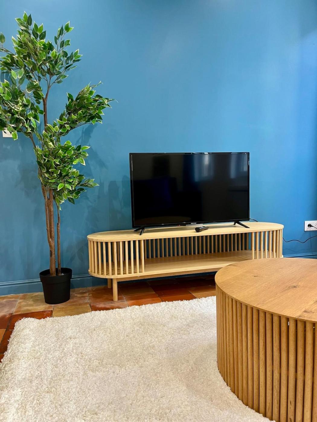 Cet appartement comporte 1 chambre, une télévision à écran plat, la climatisation et un salon.