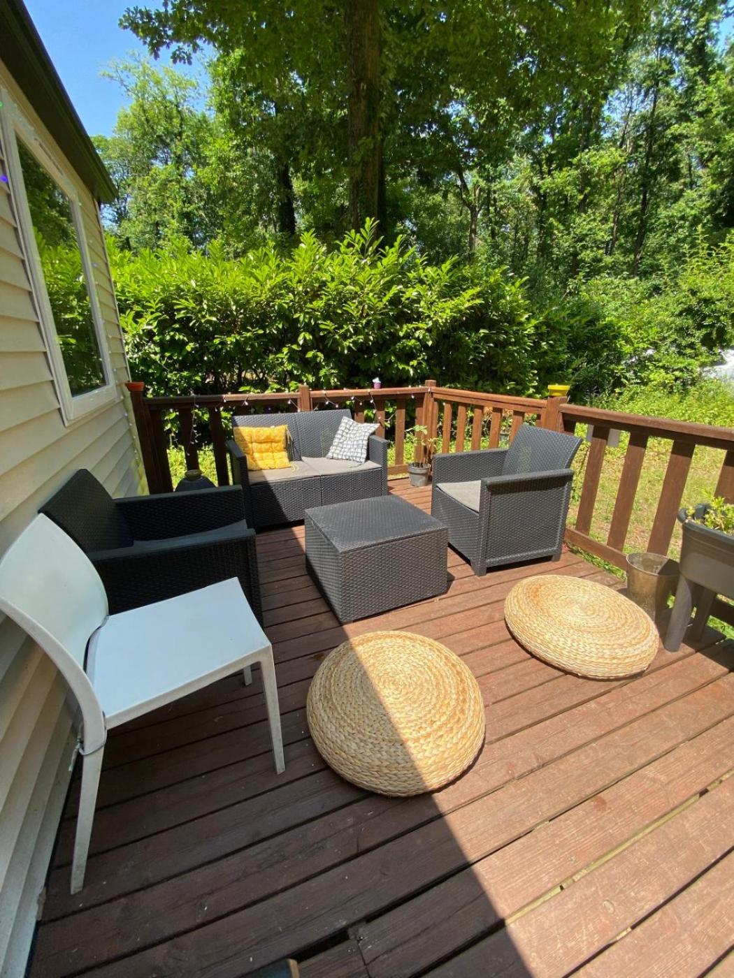 Mobile Home. The air-conditioned mobile home has 2 bedrooms and 1 bathroom with a shower and a hairdryer. Guests will find a refrigerator, a dishwasher, kitchenware and a microwave in the fully equipped kitchen. The mobile home also includes a barbecue. The mobile home features a coffee machine, a seating area, a dining area as well as a terrace with garden views. The unit has 3 beds.