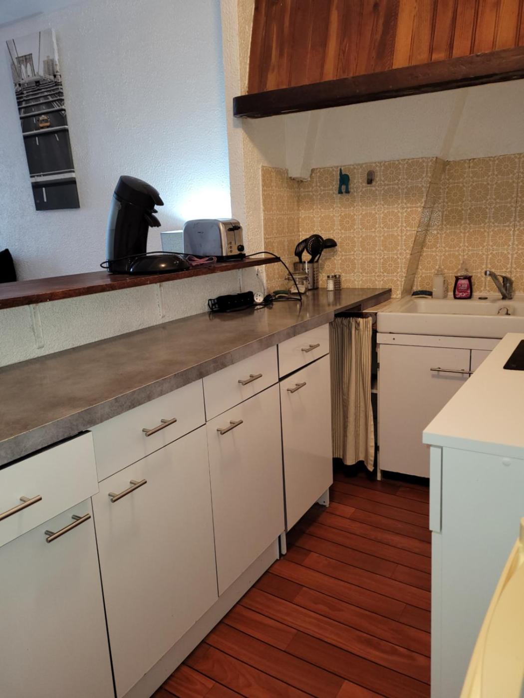 Appartement 1 Chambre. The apartment has 1 bedroom and 1 bathroom with a walk-in shower and free toiletries. Guests can make meals in the kitchen that features a stovetop, a refrigerator, kitchenware and a microwave. The apartment features a washing machine, a tea and coffee maker, a sofa, a flat-screen TV, as well as city views. The unit has 1 bed.