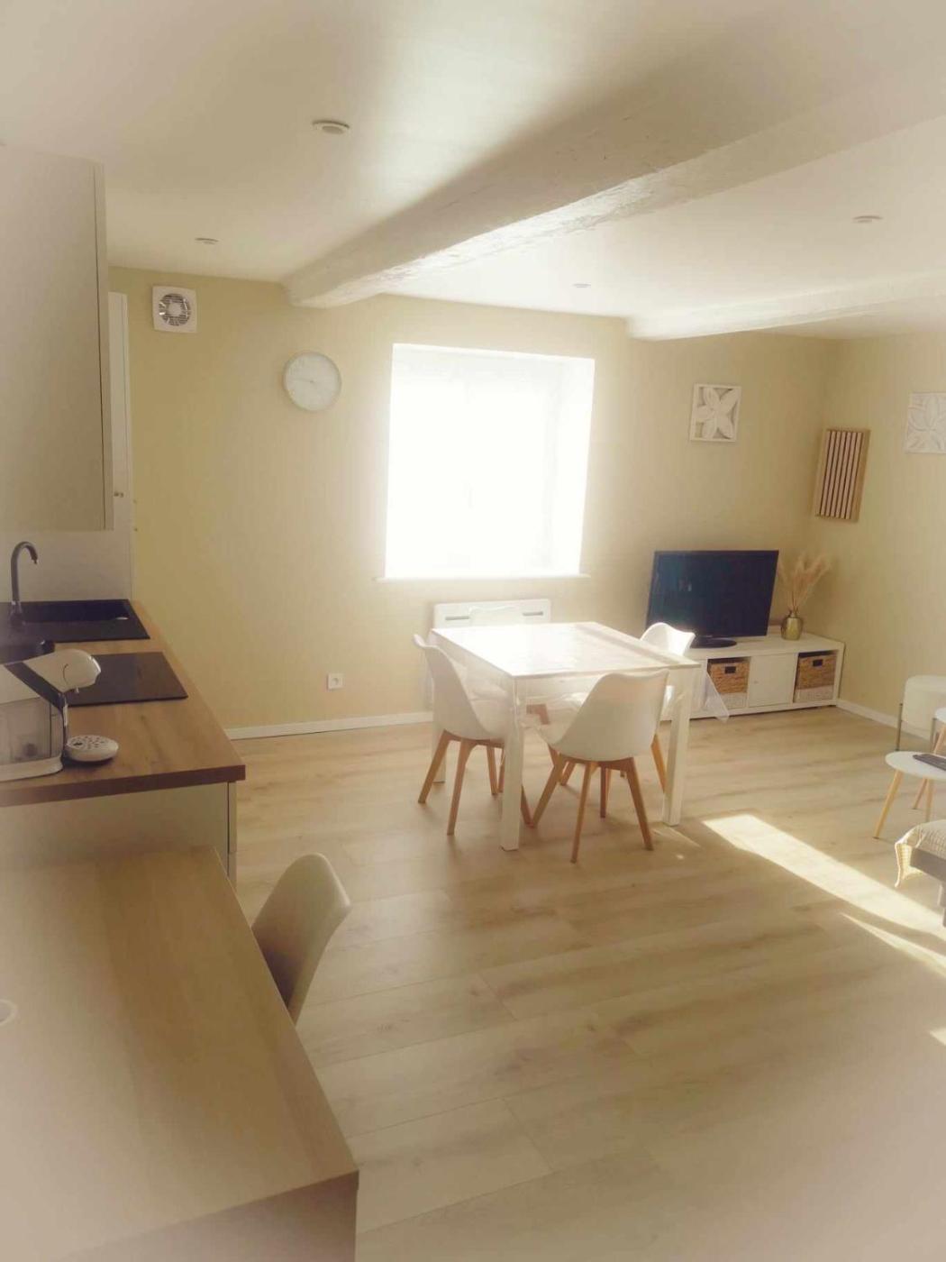 Appartement 1 Chambre. Featuring a private entrance, this apartment is comprised of 1 living room, 1 separate bedroom and 1 bathroom with a shower and a hairdryer. Meals can be prepared in the well-fitted kitchen, which comes with a stovetop, a refrigerator, a dishwasher and kitchenware. Boasting a terrace with ancourtyard view, this apartment also offers a washing machine and a flat-screen TV with cable channels. The unit offers 4 beds.