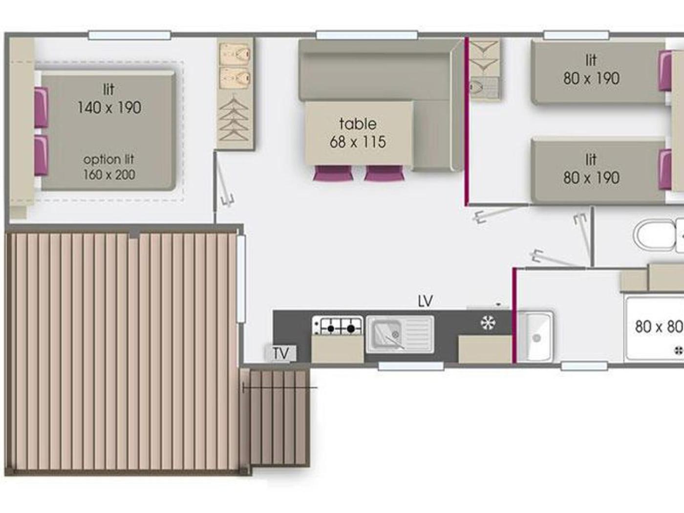 Mobile Home. Boasting 2 bedrooms and 1 bathroom with a hairdryer, this mobile home has a well-fitted kitchen and a terrace. Guests can make meals in the kitchen that features a refrigerator, kitchenware and a microwave. Featuring outdoor furniture, this mobile home also features a private entrance, a coffee machine and a TV. The unit offers 3 beds.