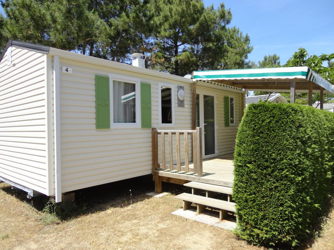 Mobile Home. This mobile home features 1 living room, 2 separate bedrooms and 1 bathroom with a shower. Guests will find a stovetop, a refrigerator, kitchenware and a microwave in the kitchen. The mobile home also comes with a barbecue. A seating area with a flat-screen TV, a coffee machine and a terrace are available in this mobile home. The unit has 4 beds. ;