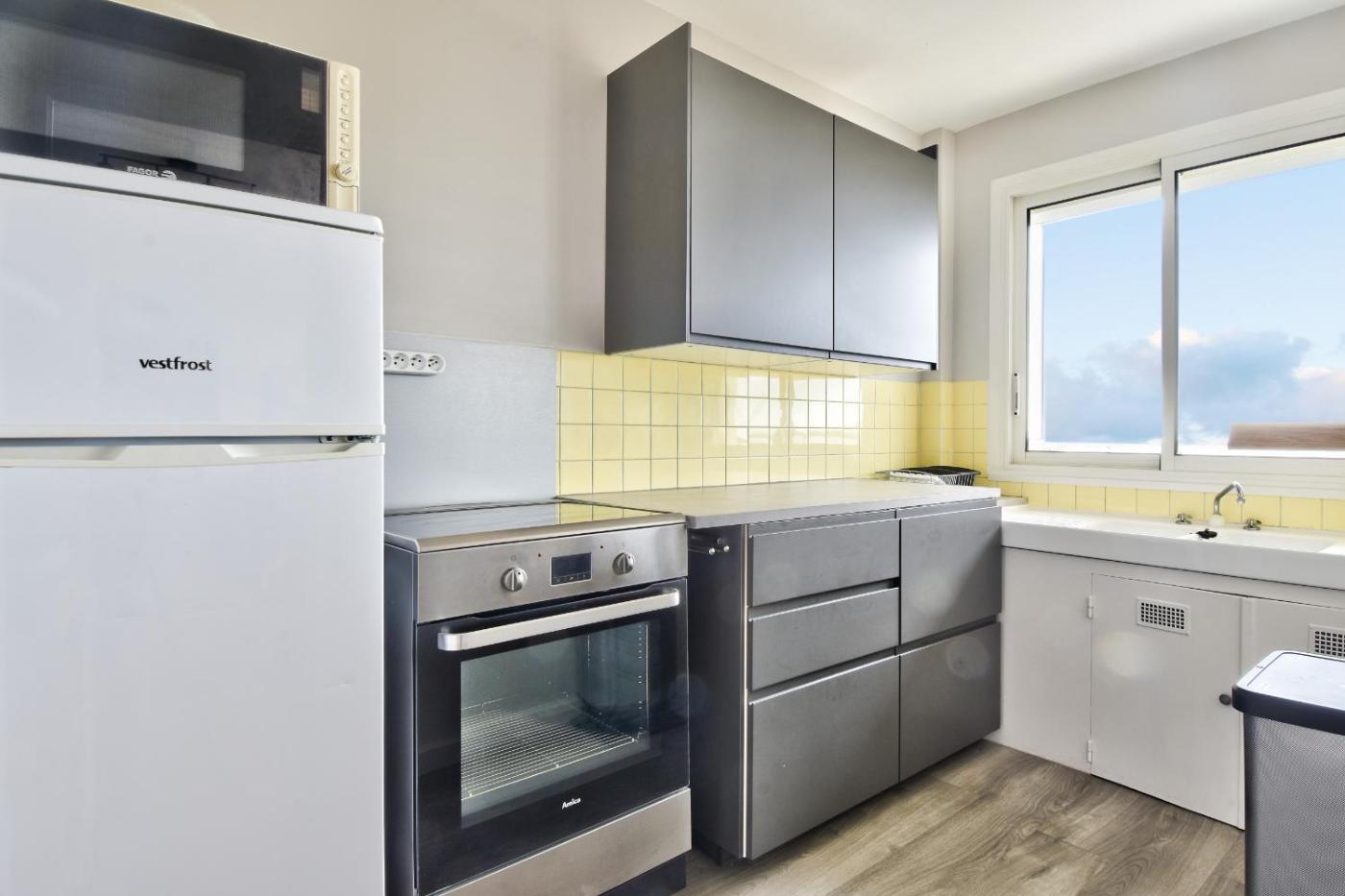Appartement. This apartment comprises 1 living room, 1 separate bedroom and 1 bathroom with a bath and a hairdryer. Meals can be prepared in the kitchen, which comes with a refrigerator, kitchenware, an oven and a microwave. Featuring a balcony with sea views, this apartment also provides a washing machine and a TV. The unit offers 3 beds.