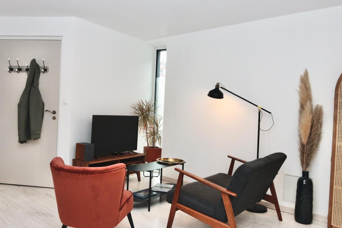 Appartement 1 Chambre. Meals can be prepared in the well-fitted kitchen, which has a stovetop, a refrigerator, kitchenware and a microwave. This apartment includes a dining area, a flat-screen TV with streaming services a coffee machine and heating. The unit has 2 beds.