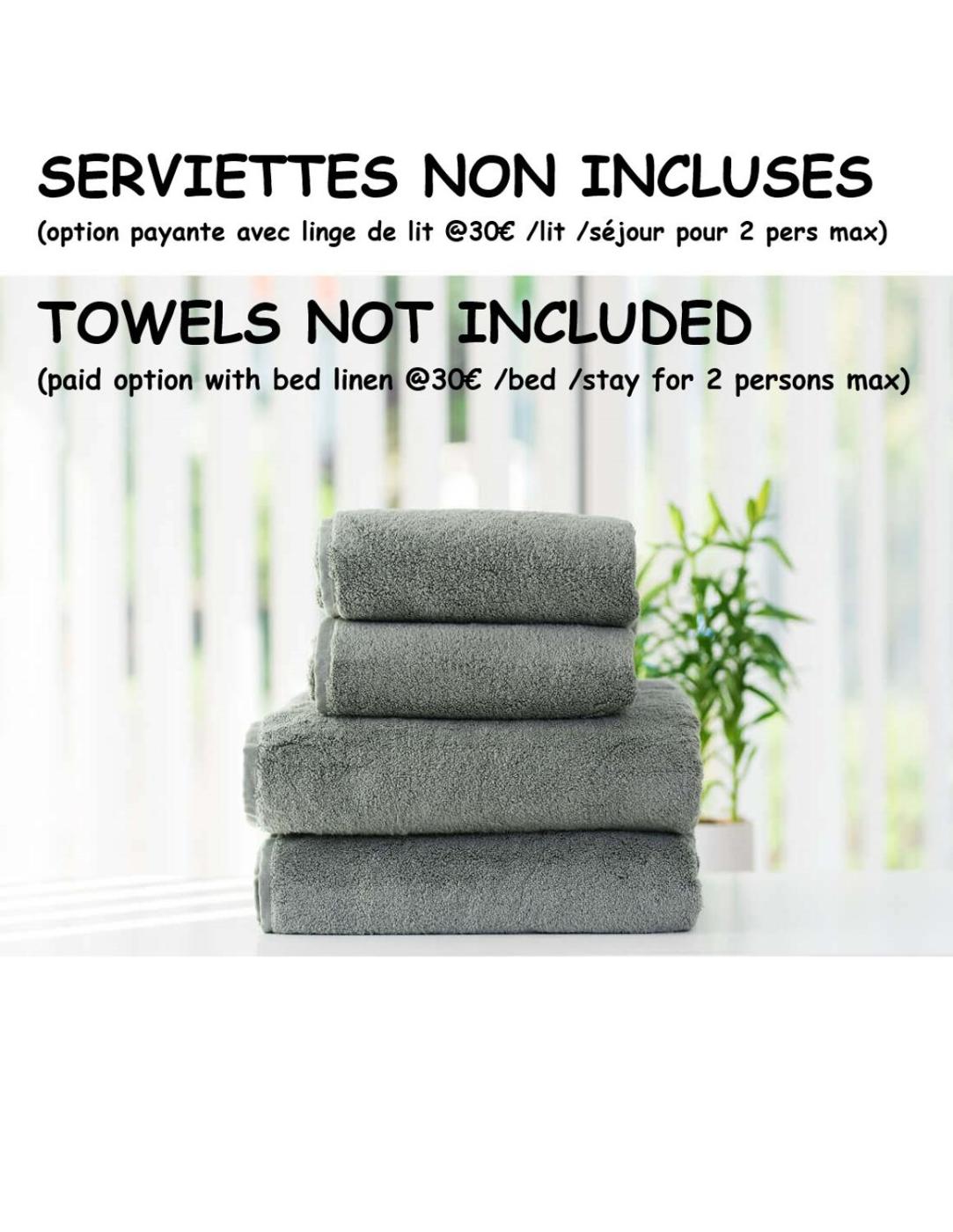Bed linen and towels are not included in the room rate. You can bring yours or rent it on site with a supplement of 30 € per stay per bed.