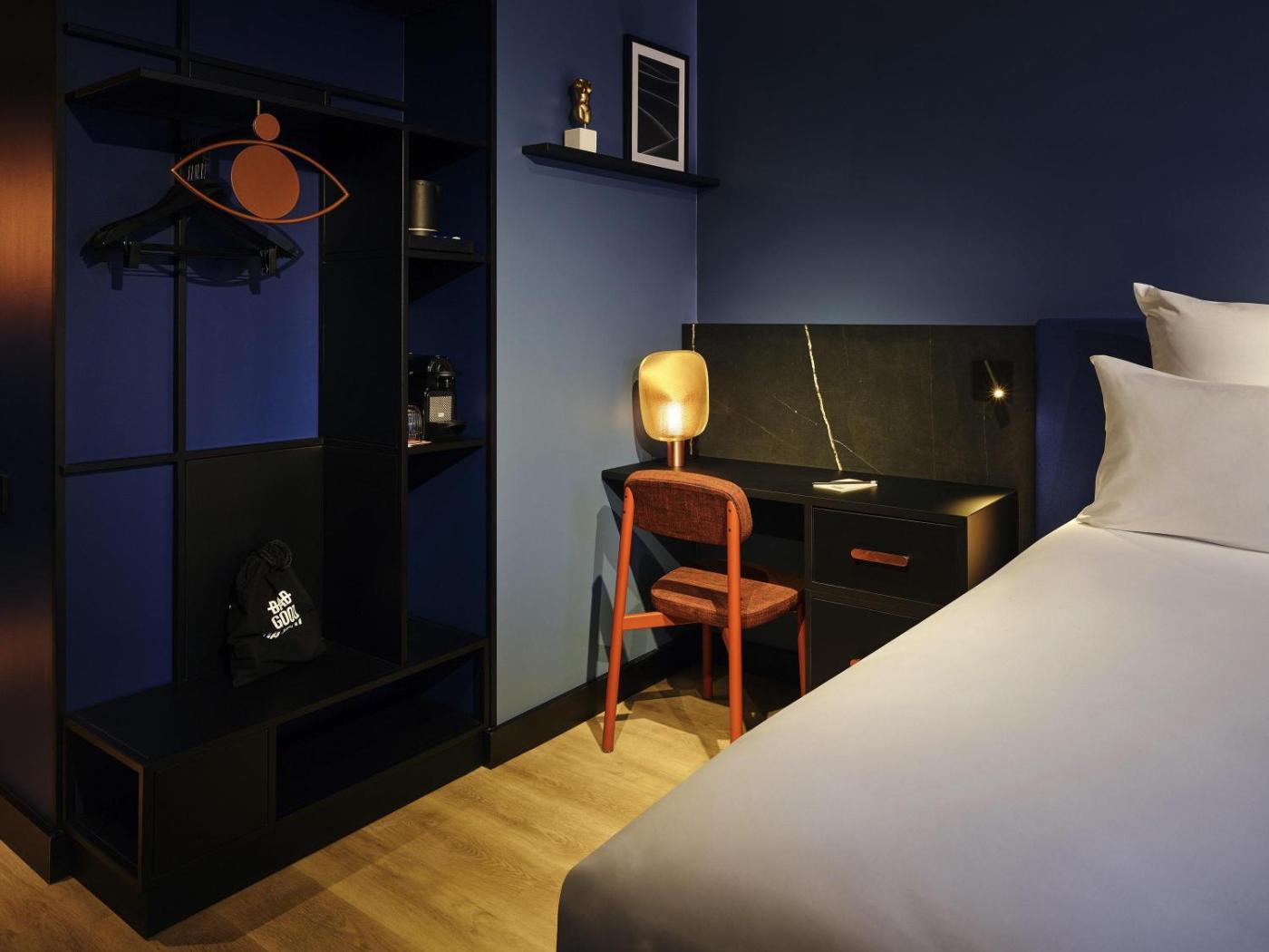 Hébergement Confort Tribe avec Lit Double - Côté Ville. Cette chambre double dispose dun coffre-fort, de parquet ainsi que dune salle de bains privative pourvue dune douche à litalienne et dun sèche-cheveux. Cette chambre double insonorisée avec vue sur la ville dispose de la climatisation, d’une télévision par câble à écran plat, d’une armoire et d’un plateaubouilloire. Le logement comporte 1 lit. ;