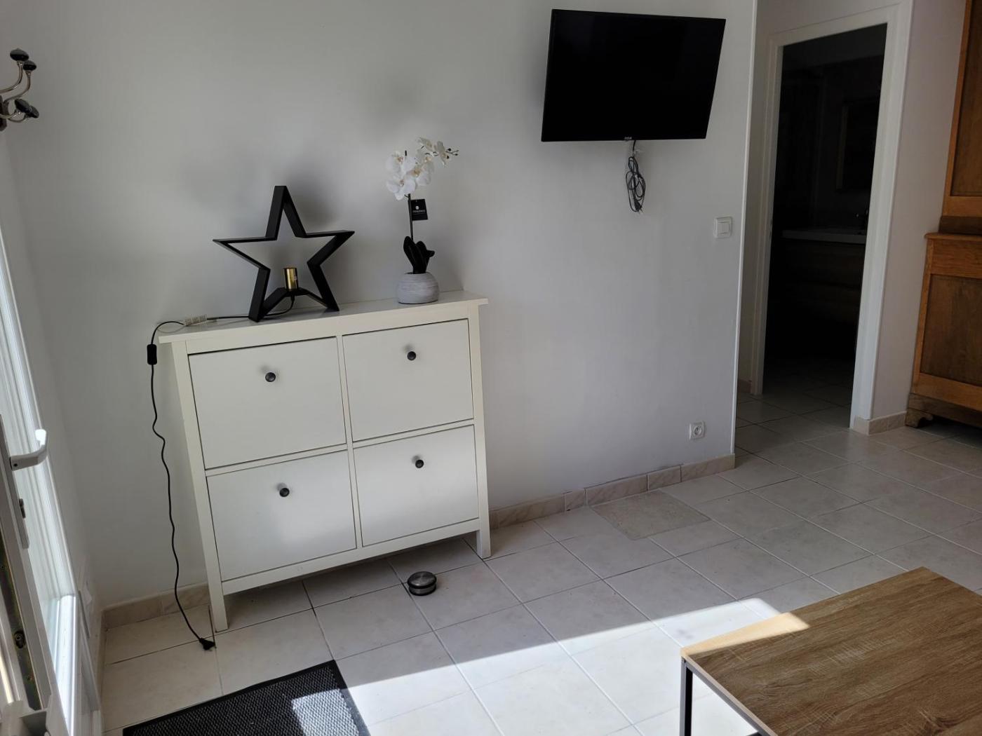Maison 2 Chambres. Boasting a private entrance, this holiday home features 1 living room, 2 separate bedrooms and 1 bathroom with a walk-in shower and a hairdryer. Guests will find a stovetop, a refrigerator, a dishwasher and kitchenware in the well-equipped kitchen. The holiday home also comes with a barbecue. Featuring a terrace with garden views, this holiday home also features a washing machine and a flat-screen TV. The unit has 3 beds.