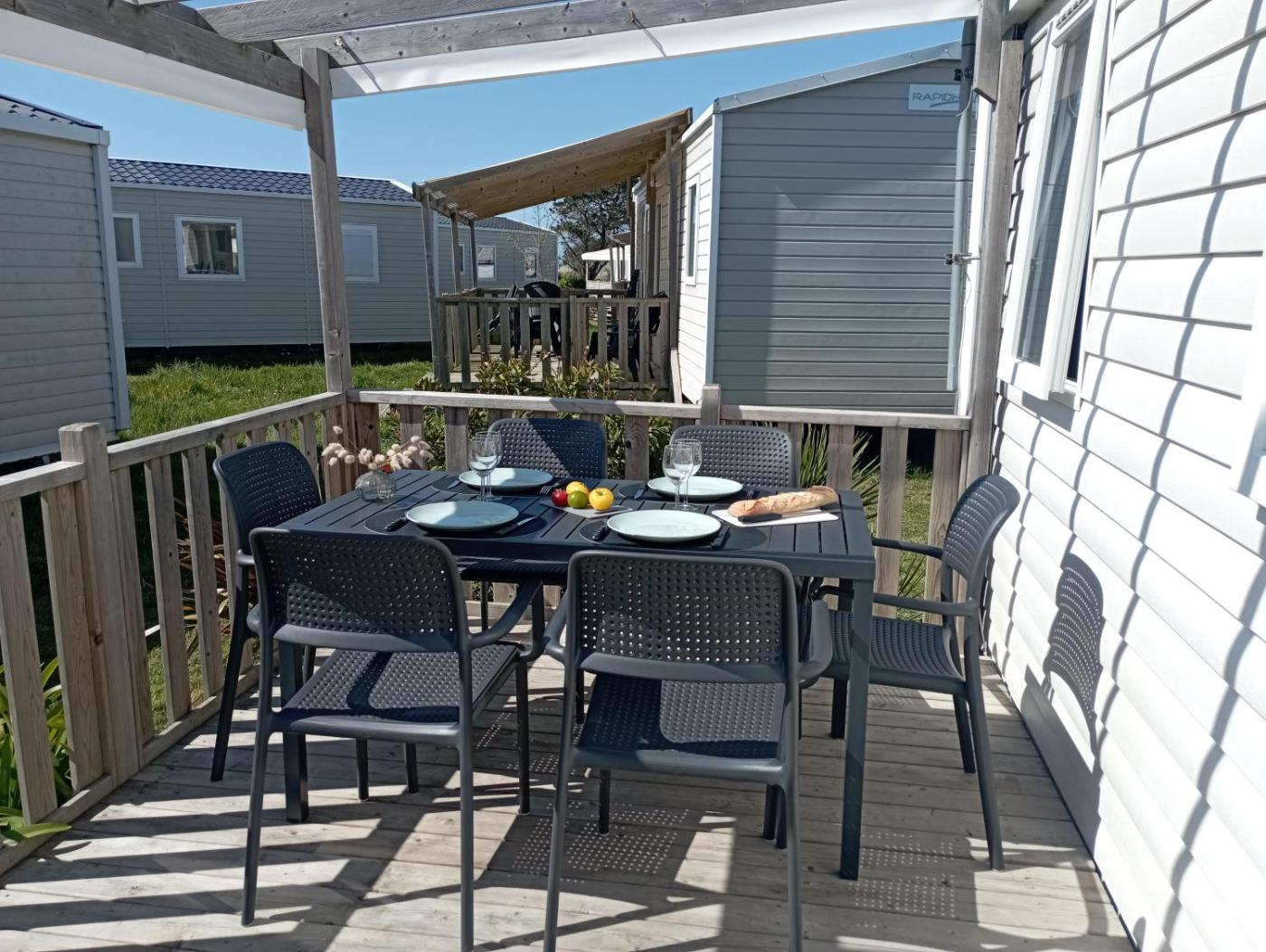 Mobile Home. Boasting a private entrance, this air-conditioned mobile home includes a kitchenette, 3 bedrooms and 1 bathroom with a shower and a hairdryer. Guests will find a stovetop, a refrigerator, kitchenware and a microwave in the kitchenette. The mobile home also features a barbecue. This mobile home has a tea and coffee maker, a seating area, a flat-screen TV and an outdoor dining area. The unit has 5 beds.