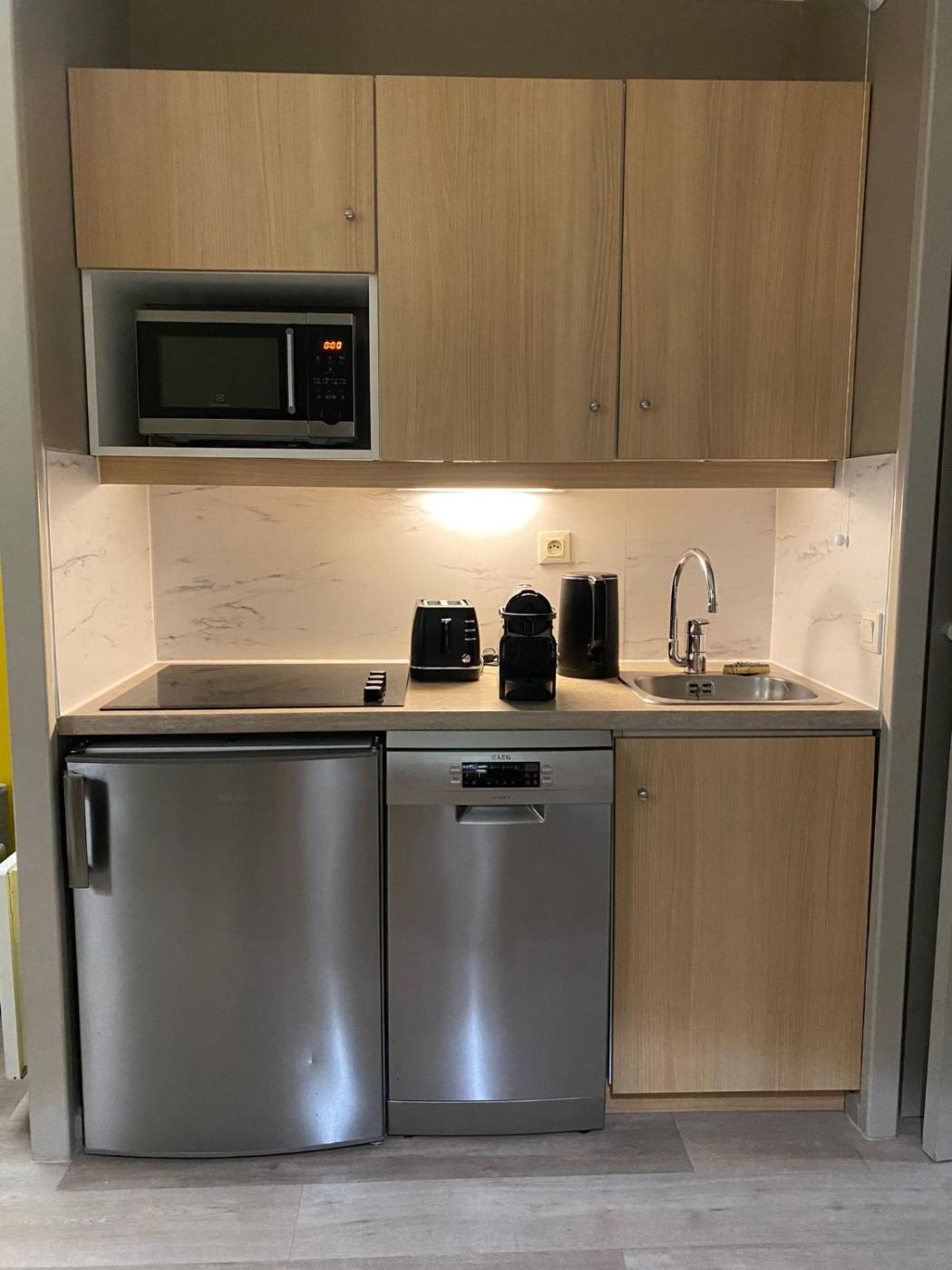 Appartement 1 Chambre. The private pool is the standout feature of this apartment. Boasting a private entrance, this apartment comes with 1 living room, 1 separate bedroom and 1 bathroom with a bath and a shower. In the kitchen, guests will find a stovetop, a refrigerator, a dishwasher and kitchenware. The apartment features a tea and coffee maker, a seating area, a wardrobe, a safe deposit box and a flat-screen TV. The unit has 3 beds.