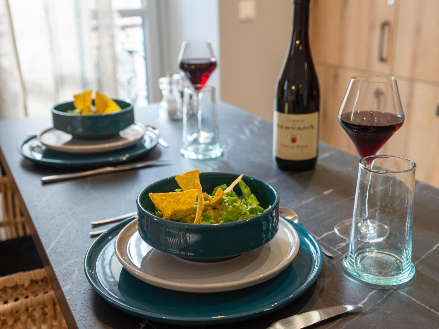 Appartement 1 Chambre. The apartment has 1 bedroom and 1 bathroom with a shower and free toiletries. In the well-equipped kitchen, guests will find a stovetop, a refrigerator, a dishwasher and kitchenware. The apartment offers a flat-screen TV with streaming services, a washing machine, soundproof walls, a coffee machine as well as mountain views. The unit has 1 bed.