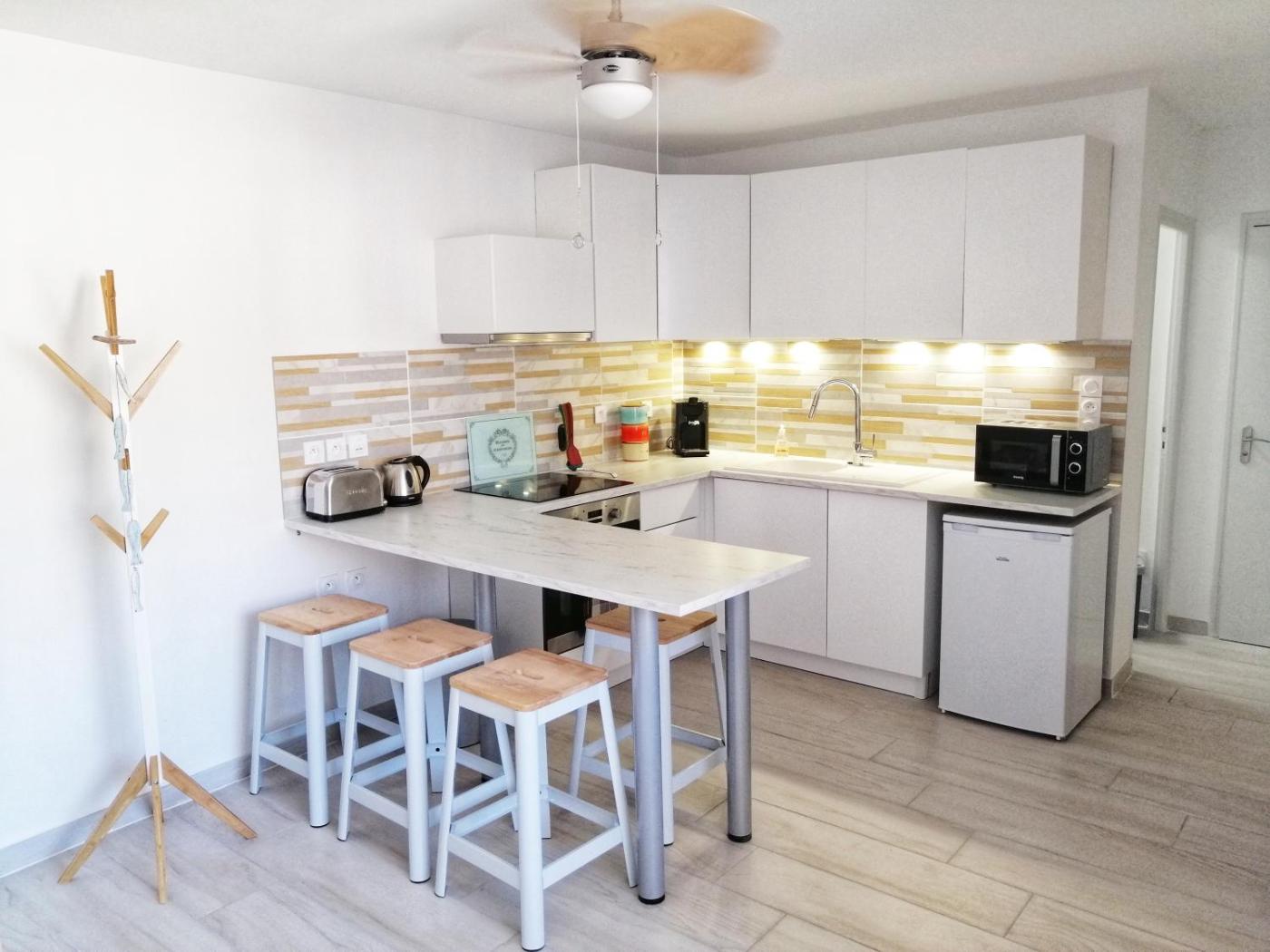Appartement 2 Chambres. The air-conditioned apartment features 2 bedrooms and 1 bathroom with a walk-in shower and a hairdryer. Guests can make meals in the kitchen that is equipped with a stovetop, a refrigerator, kitchenware and an oven. The apartment provides a flat-screen TV with streaming services, a washing machine, a tea and coffee maker, a seating area as well as mountain views. The unit offers 3 beds.