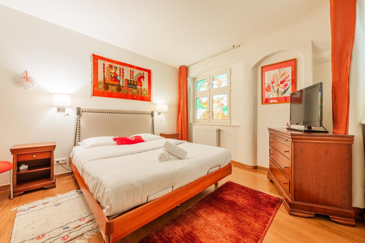 Cet appartement se compose de 2 chambres, dun salon, dune cuisine entièrement équipée avec un réfrigérateur et une bouilloire, ainsi que de 2 salles de bains avec une douche et des articles de toilette gratuits. Des serviettes et du linge de lit sont mis à votre disposition.