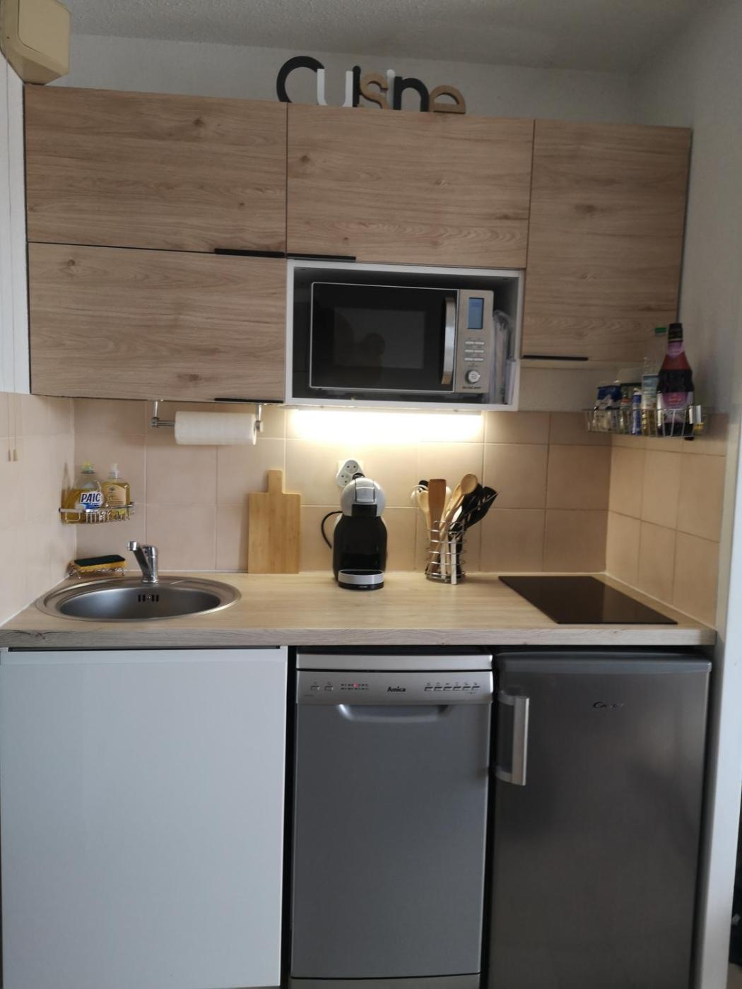Cet appartement compte 1 chambre, une cuisine avec un réfrigérateur et un lave-vaisselle, une télévision à écran plat, un coin salon, ainsi que 1 salle de bains possédant une douche.