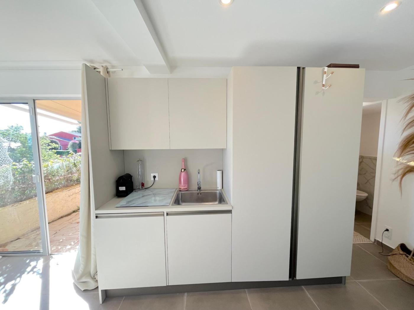 Studio - Vue sur Mer. The studio features air conditioning, a private entrance, a terrace with sea views as well as a private bathroom boasting a shower. The unit has 1 bed and 1 futon.