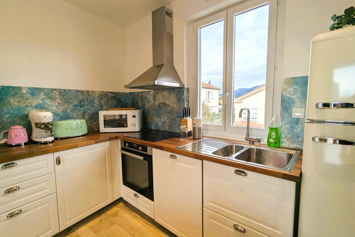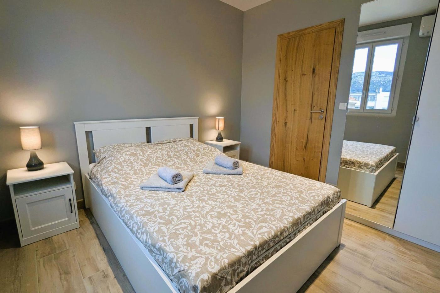 Appartement. Featuring 3 bedrooms and 1 bathroom with a bath or a shower, this spacious apartment offers a well-fitted kitchen and a terrace. Guests will find a refrigerator, kitchenware, an oven and a microwave in the kitchen. The apartment also has a barbecue. The air-conditioned apartment offers a TV, a washing machine, a coffee machine, a dining area as well as city views. The unit has 4 beds.