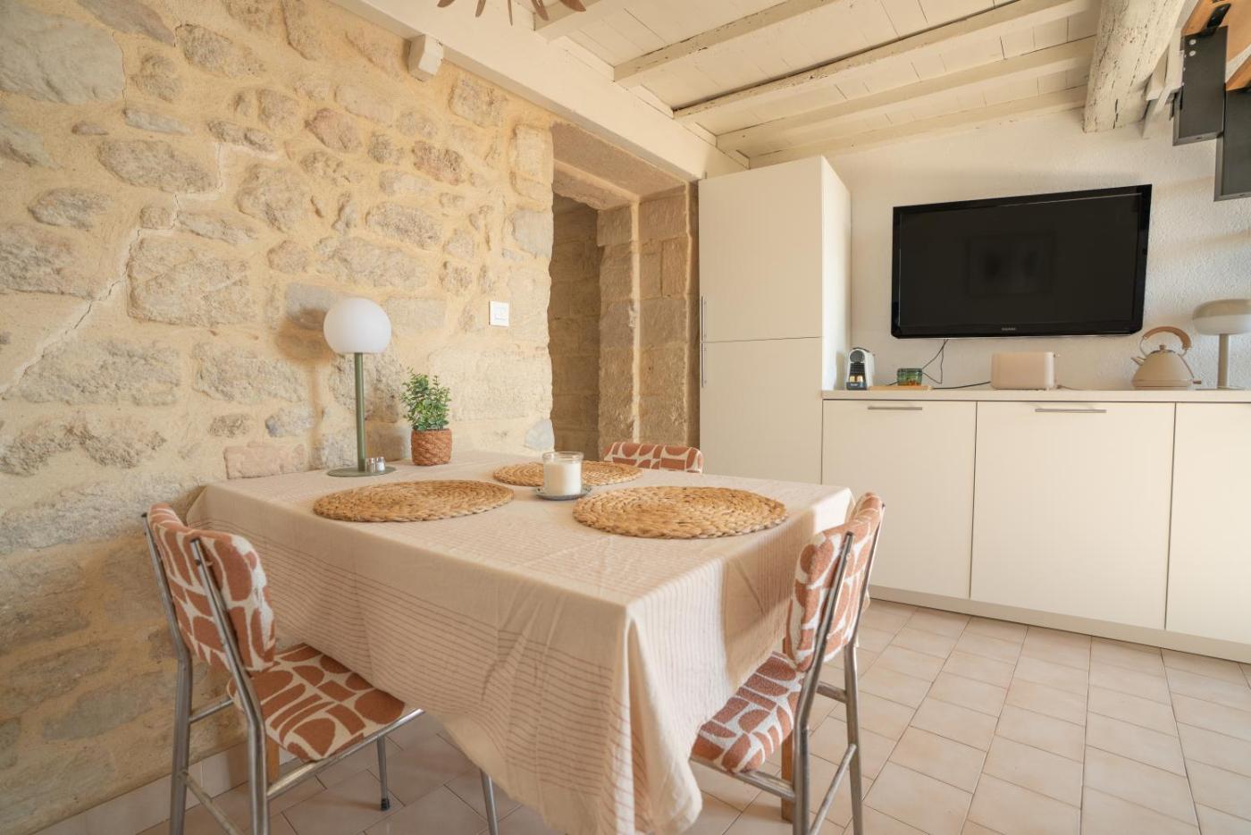 Cet appartement avec climatisation compte un coin salon, une kitchenette avec un réfrigérateur et une télévision à écran plat. Des serviettes et du linge de lit sont disponibles.